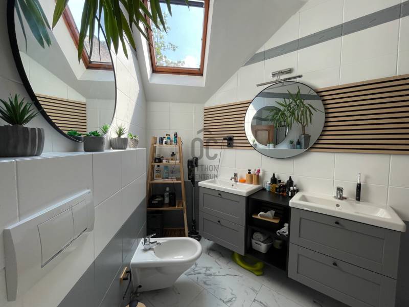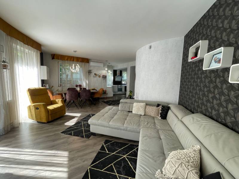 Különleges ajánlat Nagyerdő legkedveltebb részén: Simonyi út mellett elhelyezkedő, bruttó 373 m²-es, önálló családi ház, amelyet a funkciók sokfélesége tesz igazán értékessé. Többgenerációs otthonnak, magánklinikának, irodaháznak vagy cégszékhelynek egyaránt ideális — de aki a Nagyerdő közelségét szereti, családi házként is tökéletes választás. Az elmúlt években a ház korszerűsítése és belső dizájn átalakítása is megtörtént, modern, rendezett, reprezentatív egységet eredményezve.Földszint- Modern nappali–étkező: 35 m²- Gépesített konyha: 8 m²- Gardrób: 5 m²- Előtér, vendég WC- Tágas, részben fedett terasz: 37 m²- Külön bejáratú önálló lakrész: 31 m² (igény szerint könnyen egybenyitható)Tetőtér:- 3 hálószoba: 22 / 19 / 27 m²- 2 fürdőszoba (összesen 17 m²)- Gardrób szoba: 8 m²-2 loggia Szuterén:- Korábban rendelőként használt helyiség: 32 m² (váró, kézmosó, WC kiépítve) - Kazánház + mosókonyha: 11 m²- Tároló: 33 m²- Fürdőszoba: 9 m²- Dupla garázs: 31 m²- Közlekedők, kiszolgáló helyiségek Miért különleges ez az ingatlan?* Rugalmas, többfunkciós alaprajz: külön bejáratú lakrész, rendelő/üzleti helyiség a szuterénben — könnyű átalakíthatóság többféle célra.* Reprezentatív megjelenés: korszerűsítések és belső dizájn frissítései révén akár ügyfélfogadó helyiségnek vagy irodának is alkalmas.* Gyakorlati megoldások: nagy tárolókapacitás, dupla garázs, külön kazánház és mosókonyha.* Nagyerdő közelsége: zöld környezet, séták, sportlehetőségek — vonzó a családoknak és dolgozóknak egyaránt.* Kedvező kombináció: otthon + vállalkozás egy helyen — ideális megoldás például magánrendelő + lakrészként hasznosításra, vagy cégközpont + vezetői lakás egyben.Kinek ajánljuk?Többgenerációs családnak, ahol szükség van külön, mégis kapcsolódó lakóegységre.Orvosi/szakmai rendelőnek, magánklinikának (a korábbi rendelőhelyiség jó alap).Cégnek/irodaháznak, ahol fontos a reprezentatív elhelyezkedés és saját parkolási lehetőség.Olyan vásárlónak, aki szeretné a Nagyerdő nyújtotta életminőséget kombinálni a vállalkozási lehetőségekkel.