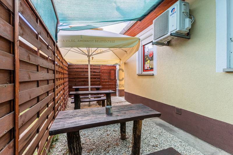 Eladásra kínálunk egy 55 nm-es, kimagaslóan szép állapotban lévő üzlethelyiséget, amelyhez egyedülálló módon 45 nm saját telekrész is tartozik. Az ingatlan jelenleg több mint 35 éve sikeresen működő sörözőként üzemel, állandó vendégkörrel, így akár azonnal folytatható a tevékenység.Kiváló elhelyezkedése miatt – frekventált gyalogos és autós forgalom mellett – számos lehetőséget kínál:vendéglátás, kávézó vagy bárfodrászat, szépségszalon, kozmetikairoda, kereskedelmi üzlet, bemutatóteremAz ingatlan helyiségei: tágas üzlettér, női és férfi mosdó, valamint raktár.Főbb előnyök:központi, forgalmas lokációsaját telekrész (45 nm) – ritkaságszámba megy a környékenkiváló állapotbejáratott vendégkör, folytatható tevékenységMegtekintés kizárólag előzetes időpont-egyeztetés alapján lehetséges.