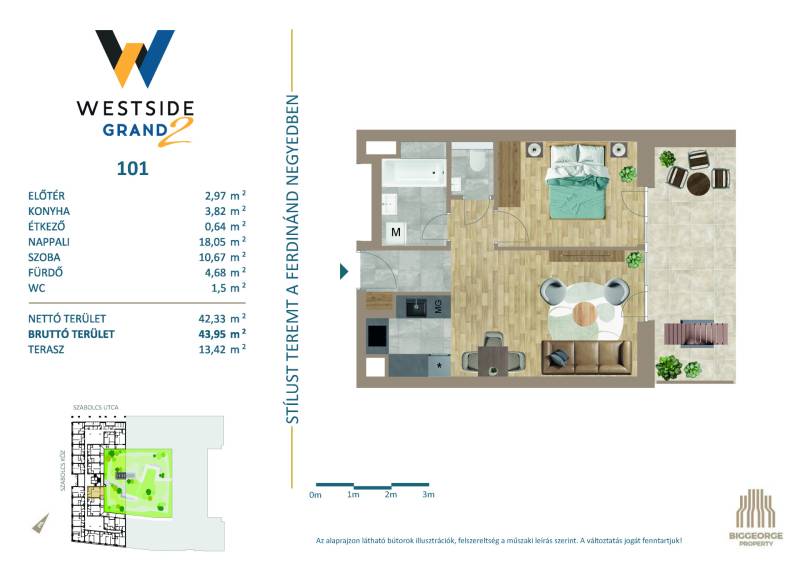 Projekt bemutatásaA projektrőlA Westside Grand I-II. a Biggeorge Property Westside fejlesztés sorozatának - a Westside Residence és a Westside Gardent követően - legújabb tagja.LokációBudapest egyik leggyorsabban fejlődő kerületének központi területén, a XIII. kerületben, a Városligettől és a megújuló Nyugati pályaudvartól sétatávolságra épül. A Nyugati pályaudvar környéke az elkövetkezendő években szinte teljesen megújul, a XIII. kerületben elhelyezkedő Szabolcs utcában, illetve közvetlen környezetében számos új építésű ingatlan épült, melyek jelentős értéknövekedést kínálnak a környéken ingatlant vásárlóknak. A több ütemben megvalósuló lakóingatlanfejlesztések hatalmas zöld parkot ölelnek körül, így a lakók akár az erkélyen ülve is élvezhetik a csendet, nyugalmat és zöld környezetet egy központi, belvárosi környezetben is.