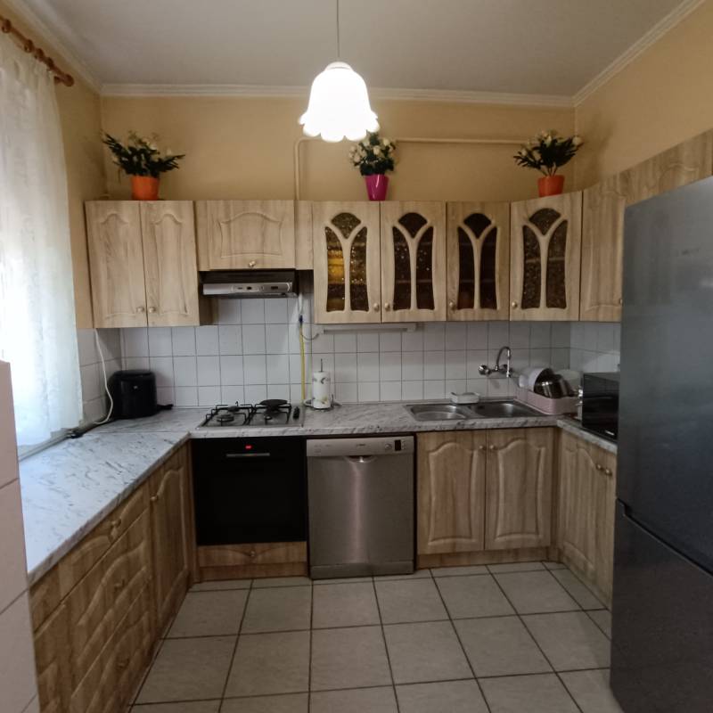 Nagykanizsa - Kiskanizsai városrészén kínálom megvételre ezt az 5 szobás családi házat, a hozzá tartozó telekkel.Kiskanizsa az egyik legjelentősebb városrésze Nagykanizsának. A 7-es főúttal, Murakeresztúrral, Szepetnekkel, Sormással illetve a horvát határ felé vezető utak /Letenye/ között teremt közúti összeköttetést.Kiskanizsán megtalálható általános iskola, óvoda, orvosi rendelő, gyógyszertár, élelmiszer boltok, sportpálya, gazdabolt, étterem, pékség, kertészet stb.Buszmegálló 300 méteren belül elérhető. Az ingatlan jellemzői:- 1979-ben épült beton alapra, B30-as tégla falazattal, az emeleti szintet 1998-ban bővítették- szerkezetileg stabil, nagyon jó elosztású az épület, K-NY tájolású, külön lakrésszel az emeleten- a két generációs ingatlanban külön lépcsőház vezet az emeletre- a földszint:75 m2 nagyságú, melynek helyiségei: 2 tágas hálószoba, konyha, étkező, nappali, fürdő-WC illetve a lépcsőfeljáró az emeletre- az emelet: 65 m2 nagyságú, ahol 2 tágas hálószoba kapott helyet, melyek mindegyike külön nyílik, konyha-étkező, nappali, fürdő-WC -fűtése gáz cirkós kazánról történik, radiátorokkal- földszinten hangulatos cserépkályhával is biztosítható a kellemes hőmérséklet- villany vezetékek konyhában rézkábelesek-tetőt 5 éve újították fel, bitumenes zsindely fedéssel, emeleten tető alatt kőzetgyapot szigeteléssel- ablakok 2 rétegű hőszigetelt műanyag szerkezetűek, rolóval és szúnyoghálóval felszereltek- a házhoz tartozik egy 21 m2 garázs, nyári konyha, fatároló- CSOK, HITEL igényelhető, melyet bankfüggetlen hiteles kollégánk ingyenesen bonyolít irodánkbanA telek 739 m2 nagyságú, konyhakerttel, gyümölcsfákkal szépen karban tartott udvarral, kerttel.Ha hirdetésem felkeltette érdeklődését, várom hívását!Irodánk teljes körű, ingyenes szolgáltatást nyújt kereső ügyfeleinknek.Szakszerű tanácsadással, hitel ügyintézéssel, energetikai tanúsítvány elkészítésével és kedvező díjszabású ügyvéddel nyújtunk segítséget.