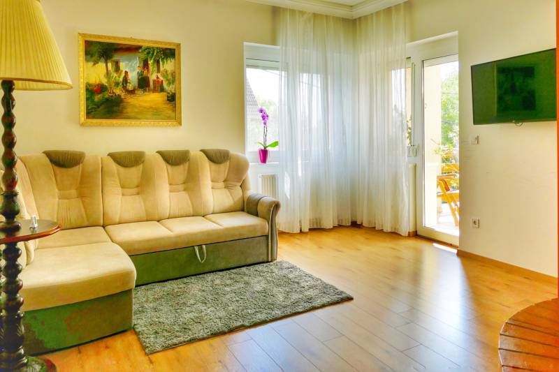 Ez a ház valóban minden korosztálynak ideális választás: fiatal pároknak, családalapítóknak és nagycsaládosoknak is kényelmes, hiszen a tágas belső terek és a jól kialakított tetőtér minden igényt kiszolgál.Ha olyan otthont keresel, ahol minden részletre figyeltek, akkor megtaláltad! Ez a masszív, kőből épült családi ház az elmúlt 5 évben teljes körű felújításon esett át:• új tető, szigetelés és villámvédelem• modern nyílászárók (háromrétegű üvegezés)• igényes hideg- és melegburkolatok• stílusos, gépesített IKEA konyha garanciávalAz alsó szinten nappali, étkezős konyha, hálószoba, fürdő és közvetlen teraszkapcsolat biztosítja a kényelmet. A 37 m²-es terasz leanderekkel, kerti bútorral és napernyővel a nyári esték tökéletes helyszíne – innen hallhatjuk a szarvasbőgést vagy épp gyönyörködhetünk a csillaghullásban..!A tetőtérből részleges panoráma tárul elénk, a földszinten pedig dupla garázs, műhely, tárolók és kazánház is helyet kapott. A fűtésről gázkazán, hűtő-fűtő klíma és egy hangulatos téglakályha gondoskodik.A parkosított, saroktelek diófával, tujákkal, játszótérrel (hinta, csúszda) teljesen körbejárható és gondozott – ideális családoknak.Előnyök röviden:• kétgenerációssá alakítható• élhető környék, barátságos szomszédság• minden gyalogosan elérhető: iskola, óvoda, buszmegálló, patika, bolt• teljes közmű, klíma, redőnyökA ház egy forgalmasabb úton helyezkedik el – viszont épp emiatt kiemelkedő a közlekedés és a lokáció előnye. Innen minden könnyen elérhető: a belváros, a HÉV, iskolák, óvodák, boltok, patika.Ez a ház nemcsak egy ingatlan – hanem egy olyan otthon, amely egyszerre ad teret a családi élethez, a mindennapi kényelemhez és a praktikus megoldásokhoz.Ha Szentendrén keresel egy tágas, igényesen felújított házat, amely minden életszakaszban jó választás, itt a lehetőség!Ne maradj le róla! Keress bizalommal a részletekért és a megtekintésért! #Szentendre #CsaládiHáz #FelújítottOtthon #TágasTerek #NagyTerasszal #KényelmesÉlet #TopLokáció #EladóHáz#SzentendreLiving #FamilyHome #RenovatedHouse #SpaciousLiving #BigTerrace #ComfortAndStyle #GreatLocation #DreamHome