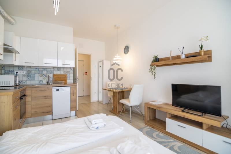 Eladásra kínálok egy 12. emeleti, napfényes studió lakást a Waterfront City szívében, amelyhez egy 4,58 m²-es erkély tartozik panorámás kilátással. A LAKÁS MAGASEMELETI ÍGY RENDKÍVÜL BENAPOZOTT!A lakás kiváló állapotú, világos, barátságos hangulatú, és azonnal költözhető! A LAKÁS GÉPESÍTETT KONYHÁVAL KERÜL ÁTADÁSRA!A Waterfront City Óbuda egyik legfiatalosabb és legdinamikusabban fejlődő városrésze, ahol a mindennapi élet kényelme és a kellemes, vízparti hangulat tökéletes egyensúlyban van.LOKÁCIÓ:- Jó közlekedés: HÉV és több buszjárat néhány perc sétára- Belváros gyorsan elérhető- Fiatalos, pezsgő környék, ahol kávézók, éttermek és szórakozási lehetőségek találhatók- Vízpart közelsége, nyugodt környezetbenA 2022-ben átadott épület modern kialakítású, a hőszivattyús fűtés-hűtés pedig kényelmes, energiatakarékos megoldást kínál, így az ingatlan hosszú távon is értékálló befektetés.Ez a lakás ideális választás azoknak, akik első otthont keresnek, biztonságos befektetést szeretnének, vagy könnyen kiadható, fenntartható ingatlant keresnek.A kompakt méret miatt könnyen fenntartható, mégis minden fontos funkcióval rendelkezik, így tökéletes kombinációja a városi életnek és a vízparti nyugalomnak.Az ingatlan nyugati fekvésű, így kis teraszáról minden nap élvezhetjük a lenyugvó nap utolsó sugarait.A LAKÁST JELENLEG RÖVIDTÁVÚ BÉRBEADÁSSAL ÜZEMELTETIK, ÍGY ÁTLAG FÖLÖTTI HOZAMOT PRODUKÁL ÉS ÖNNEK EGY PERCET SEM KELL VELE FOGLALKOZNIA! Ha felkeltette érdeklődését, keressen bizalommal, és fedezze fel ezt a 12. emeleti panorámás, modern otthont a Waterfront City szívében!A LAKÁSHOZ VÁSÁROLHATÓ GARÁZS IS!