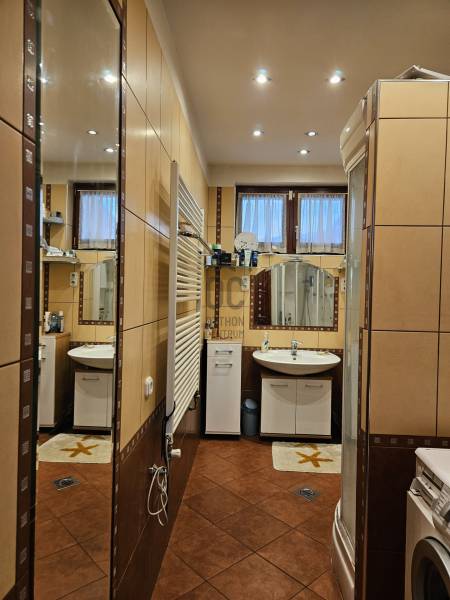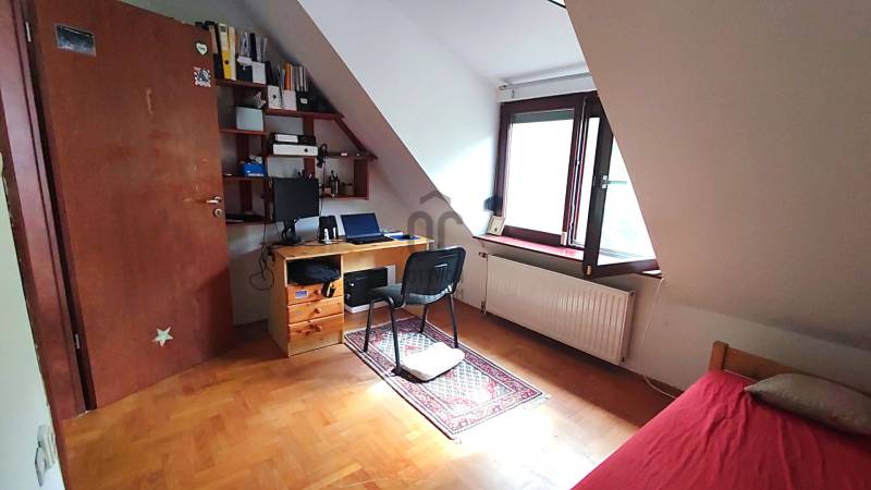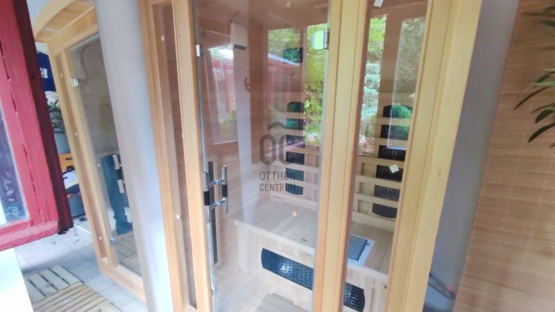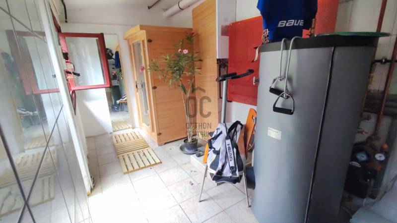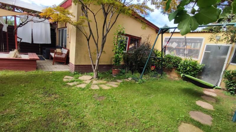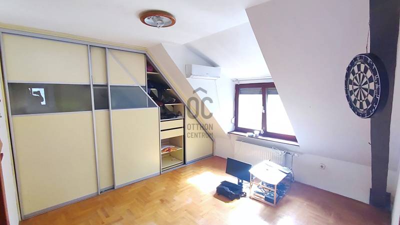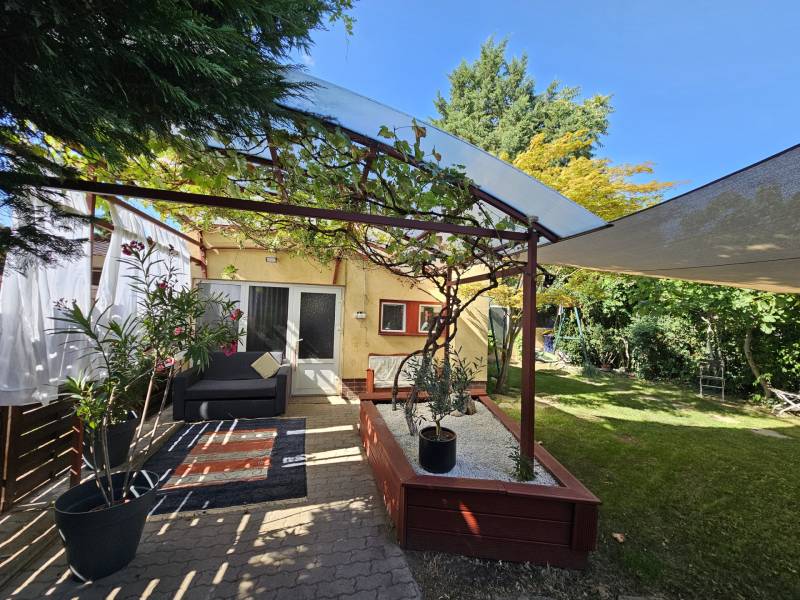 Önálló helyrajzi számú 117 m2-es hőszigetelt családi ház + 26 m2-es garzon, fedett terasszal, szaunával, kondirésszel, borospincével és fedett grillezővel, 406m2 telekkel, parkosított kert.A fedett teraszról előtérbe lépve különálló wc található. A konyha-étkezőn továbbhaladva jutunk el a lépcsőházon át a nappaliba és egy egész szobába. Nappaliból fürdő-wc nyílik. Tetőtérben egy közlekedőből nyílik 2 félszoba és egy egész szoba, valamint a padlófűtött fürdő-wc. Burkolatai jó állapotúak. Nyílászárói jó minőségű fa ablakok, hőszigetelő üvegezéssel.- A+ energetikai besorolás- napelem 6,75kWh- napkollektor+puffertartály- új kondenzációs kazán- radiátor+padlófűtés- 3 db klíma- alacsony rezsiNyugodt, kisforgalmú utca, metró, bevásárlóközpontok, óvodák és iskolák pár perc sétára. Gondozott, belátásmentes kert automata öntözőrendszerrel (ehhez külön vízóra), gépkocsi-beállóval.Kiváló választás családoknak és többgenerációs otthont keresőknek!