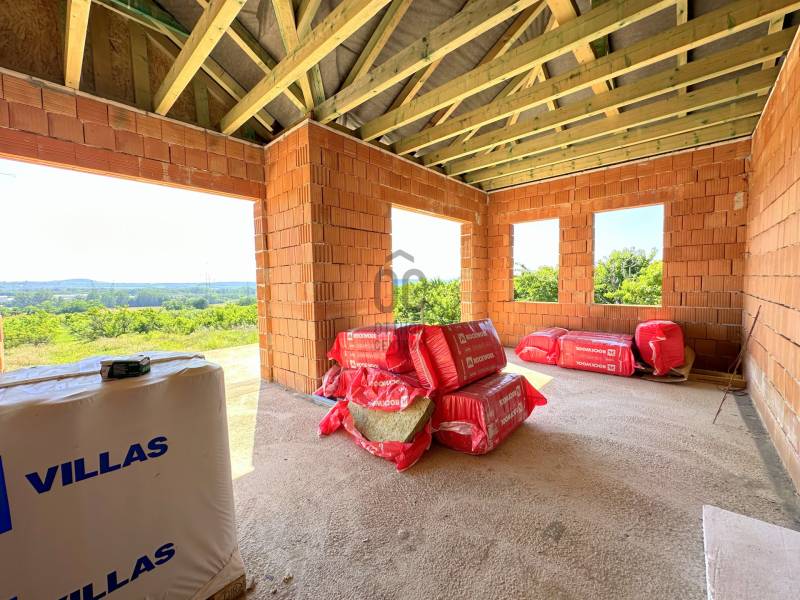 Eladó Szadán, a méltán kedvelt Aranyhegyen egy 4 szobás, 954nm-es telekkel rendelkező új építésű ikerház!Impozáns könyéken, meseszép örök panorámás és csak arra vár, hogy a tiéd lehessen.Főbb tulajdonságai:+ Egy szintes ikerház, ahol mindössze egy falon érintkezik a két lakótér, ami duplán téglázott. + Belülről szinteltolásos és nettó 99nm-es a lakótér, hozzá 32nm-es terasz és egy 19nm garázs.+ Az egész ház és válaszfalak mind 30-as téglából épültek és lesznek szigetelve. A fűtésről és hűtésről modern geotermikus fűtésrendszer gondoskodik.+ Igazán jó elosztású, mivel 3 hálószobás és egy hatalmas amerikai konyhás-nappali lett kialakítva.+ Ablakos fürdőszoba mosdóval és külön wc-vel lett tervezve, hozzá 1 db háztartási helyiség és külön gardrób.+ Mindkét lakrészhez külön bejáratú lesz és tartozik hozzá 954nm telek is.+ Jelenleg szerkezetkész állapotú, befejezés 3-5 hónap. Burkolatok, ajtók, szaniterek választhatók.+ Jogilag rendezett, tehermentes és akár CSOK és hitel is felvehető rá.+ A kivitelező leinformálható, a környéken referencia házak megtekinthetők bármikor.+ Tömegközlekedés a háztól 11 perc sétára található, ahol távolsági buszok és a Szadai Székely Bertalan úti vonat megálló található.+ Az utca épp terep rendezés alatt áll, a betonozása még idén befejeződik.Külön és egyben is eladó, ha egész családoddal költöznétek össze! További extrák beszerelése megbeszélhető, mivel a kivitelező teljes csapattal rendelkezik.Ha olyan ikerházat keresel, ami teljesen új, modern kornak megfelel és remek környéken találod, akkor ezt a házat épp neked építik!