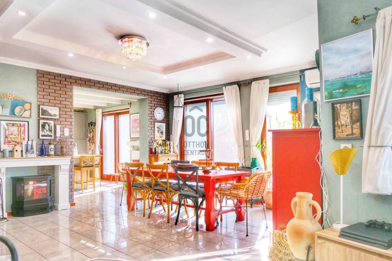 Szentendrén, kiválóan megközelíthető, gondozott, lakóparki környezetben található ez a tágas, világos, meleg, családias hangulatú otthon.Az ingatlan lakóparkon belüli elhelyezkedése is kedvező, mivel szélső ház, viszonylag nagy telek tartozik hozzá, illetve van garázs is.Az emeleti hálószobák mérete megengedné, hogy akár két szobát alakítsanak ki belőlük.Olyan, akár többgyermekes családoknak ajánlanám, akiknek fontos a biztonság, illetve a gyerekek önálló közlekedése az otthonuk és az iskola között.