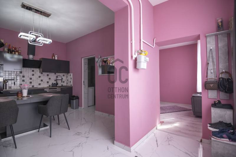 Fedezd fel ezt a lenyűgöző, frissen felújított házat Pesterzsébet szívében, ahol a modern életérzés és a csendes környék tökéletes harmóniában találkozik!A vételár tartalmazza a teljes bútorzatot igény esetén!Ez a 66 négyzetméteres, három szobás ingatlan ideális választás fiataloknak, idősekenek, családoknak egyaránt akik saját otthont keresnek vagy befektetési lehetőséget fontolgatnak.A ház kiváló állapotban várja új lakóit, és az amerikai konyhás, tágas nappali nemcsak a mindennapi élet kényelmét biztosítja, hanem a baráti összejövetelek tökéletes helyszínéül is szolgál. A ház betonfödémes így akár felfelé bővíthető!A 556 négyzetméteres telek rengeteg lehetőséget rejt magában, legyen szó kerti tárolóról vagy a saját zöld oázisod kialakításáról, vagy akár megosztásról, mert még egy ingatlan építhető a telekre! A ház világos és modern dizájnja mellett az akadálymentesített kialakítás is hozzájárul ahhoz, hogy mindenki számára ideális választás legyen.A gázkonvektoros fűtés és a klímaberendezés biztosítja a kényelmet minden évszakban, így nem kell aggódnod a hőmérsékletváltozások miatt. A környék kitűnő közlekedési lehetőségekkel büszkélkedhet, így a város többi része könnyedén megközelíthető. A közeli buszmegállók és villamosvonalak révén a napi ingázás problémamentes, és a város nyüzsgésétől távol, mégis közel élvezheted a csendes környezetet. Pesterzsébet számos lehetőséget kínál a szabadidős tevékenységekre is, legyen szó parkokról, sportpályákról vagy helyi boltokról, ahol mindent megtalálsz, amire szükséged lehet. Ez az ingatlan nem csupán egy ház, hanem egy lehetőség, hogy egy olyan otthonra lelj, amely tökéletesen illik az életstílusodhoz.Ha bármilyen kérdésed van, vagy szeretnéd megtekinteni ezt a csodás ingatlant, bátran keresd meg a részletekkel kapcsolatban. Ne hagyd ki ezt a remek lehetőséget, hogy a saját otthonodban élvezhesd a modern élet előnyeit egy csendes, barátságos környéken!Ez az ingatlan a \"Felező csomag\" megbízási portfólióhoz tartozik. Részletek az Otthon Centrum weboldalán.
