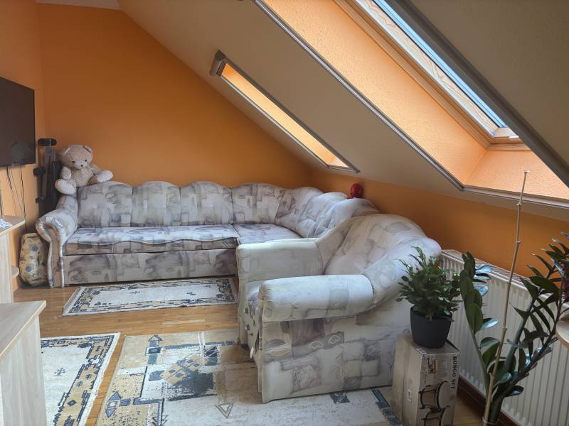Eladó 3. kerületben az Ürömhegynél kétgenerációs Családi ház.Különösen nagy, 1920 nm-es, enyhén emelkedő telken található, ami csodálatos kilátást biztosít már a ház alsó szintjéről is, az emeletről pedig panorámás kilátása nyílik a szemközti Harsánylejtőre. Déli fekvésének köszönhetően gyönyörű napfényes, világos.A telken egy 220 nm területű, 2 szintes, 2 generációs (két külön lakrésszel rendelkező) ház, egy fedett gépkocsibeálló és a telek végében egy önálló kisház áll. A két generációs ház alsó szintje épült korábban, itt egy garázst és egy légó pincét is találunk, a fentebbi szinten egy 65 nm-es önálló lakrész kapott helyet (2 szoba - étkező -konyha - kamra + terasz elrendezéssel), és ugyanezen a szinten található a nagyobbik lakrész alsó része is (előszoba - WC - konyha+étkező elrendezéssel), valamint egy télikert és egy hátsó terasz.Az emeleten egy közösségi térből nyílik a sarokkádas fürdőszoba és egy külön mellékhelyiség, illetve három külön szoba, a legnagyobb az erkélyes nappali panorámás kilátással.A ház jelen állapotában közepes állapotú , a fenntartási költsége méretéhez képest nagyon kedvező, rezsije kifejezetten alacsony. Jövőbeli tulajdonosa számára a ház jelenlegi állapotában is használható, de egy teljes felújítással hatalmas, modern otthon varázsolható belőle. Méretének és elrendezésének köszönhetően tökéletes több generáció összeköltözésére.A telek nagy méretének köszönhetően alkalmas ikerház építésére is, így befektetők figyelmébe is ajánlom.Ha valaki irodát vagy vállalkozását szeretné otthonával egy fedél alá hozni, ezt itt tökéletesen megvalósíthatja, mert a kerítésen belül több gépkocsi beállására is van lehetőség, valamint a kerítés előtt egy vendégparkoló is kialakításra került.