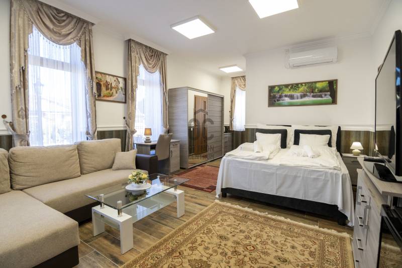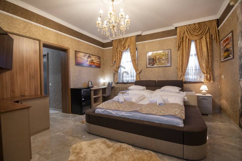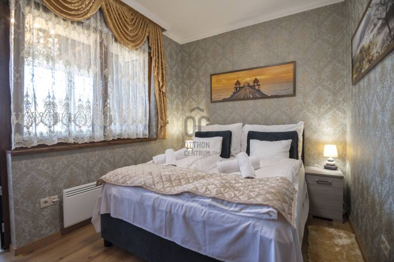 ???? 4★ MŰKÖDŐ, BEJÁRATOTT PANZIÓ – BERENDEZETTEN, TEHERMENTESEN ELADÓ„Ahol a harmónia és a vendégszeretet találkozik – itt minden részlet a kényelmet szolgálja.”RÖVID ÖSSZEFOGLALÓEladásra kínálunk egy 4 csillagos, folyamatosan működő, bejáratott panziót, amely teljes berendezéssel együtt, per- és tehermentesen kerül értékesítésre.A kétszintes, összesen 570 m²-es ingatlan gondosan karbantartott, modern technikai felszereltséggel és elegáns belső terekkel rendelkezik.Az épület azonnal üzemeltethető, stabil vendégkörrel és kiemelkedő értékelésekkel várja új tulajdonosát.LOKÁCIÓA panzió egy csendes, rendezett, zöldövezeti környezetben található, kiváló megközelíthetőséggel és kiépített infrastruktúrával.A közelben gyógyfürdő, természetvédelmi területek, sport- és kirándulási lehetőségek biztosítják az állandó vendégforgalmat egész évben.A környék biztonságos, rendezett, és kimondottan kedvelt a belföldi és külföldi látogatók körében is.AZ ÉPÜLETA panzió kétszintes kialakítású, összesen 9 vendégszobával és 4 lakosztállyal, valamint wellness részleggel és étkezővel.Az ingatlan modern klímatechnikával, elektromos fűtéssel, törölközőszárítókkal, hőszigetelt nyílászárókkal és energiatakarékos rendszerekkel felszerelt.Az udvaron ViaColor burkolatú, sorompóval zárt parkoló biztosítja a kényelmes és biztonságos parkolást.ALSÓ SZINTA földszinten öt darab Superior szoba található, mindegyik zuhanyzós fürdővel és WC-vel, elegáns, klimatizált kivitelben.Emellett helyet kapott itt a recepció, személyzeti öltöző, külön vendégmosdó, valamint a panzió szíve: az étkező és lobbybár,amelyhez konyha, tálaló, hűtőkamra, iroda és gyereksarok is tartozik.A tágas étkezőben svédasztalos reggelikhez kialakított pult, zenekari sarok és elegáns bútorzat biztosítja a kellemes atmoszférát.Az udvaron fagyizó és hangulatos, virágos kerthelyiség várja a vendégeket, amely ideális nyári pihenésre, kávézásra vagy esti borozásra.A kertben bográcsozásra és grillezésre is alkalmas, viacolor burkolatú terület került kialakításra.FELSŐ SZINTAz emeleten négy tágas Deluxe lakosztály található, melyek 55–60 m²-esek, és két különálló hálószobával, nappalival, konyhával és zuhanyzós fürdővel rendelkeznek.Két lakosztály erkéllyel is bővül, kilátással a zöld udvarra.A belső terek modern, időtálló anyagokkal, elegáns burkolatokkal és harmonikus színvilággal készültek.A felső szinten helyet kapott továbbá egy exkluzív wellness részleg, ahol jakuzzi, finn és infraszauna, valamint zuhanyzó és pihenőtér kínál teljes körű feltöltődést.KÜLÖNLEGESSÉGEK ÉS ELŐNYÖK4★ minősítésű, folyamatosan működő, bejáratott panzió570 m²-es, modern, igényes kialakítású épület9 vendégszoba + 4 lakosztály, teljes berendezésselExkluzív wellness részleg (jakuzzi, finn és infra szauna)Klimatizált helyiségek, elektromos fűtés, okosmegoldásokHangulatos étkező, lobbybár, iroda, gyereksarokZárt, ViaColor burkolatú parkolóFagyizó és virágos kerthelyiség, szabadtéri pihenőtérPer- és tehermentes, azonnal birtokba vehetőEz a 4 csillagos panzió nem csupán egy ingatlan, hanem egy bejáratott, jövedelmező vállalkozás,amely azonnal folytatható, vagy akár prémium szintű boutique hotelként továbbfejleszthető.Tökéletes választás befektetőknek, turisztikai szereplőknek vagy családi vállalkozásoknak,akik egy biztos, értékálló, igényesen megépített szálláshelyet keresnek.