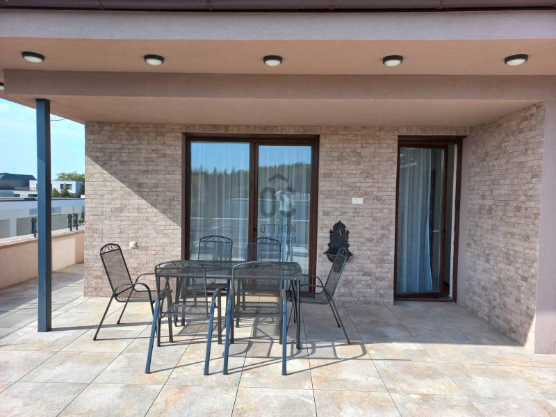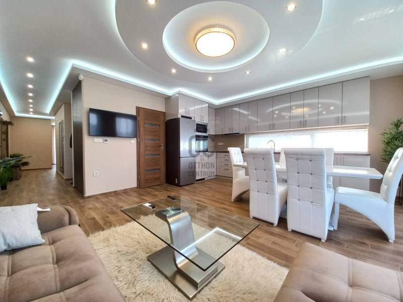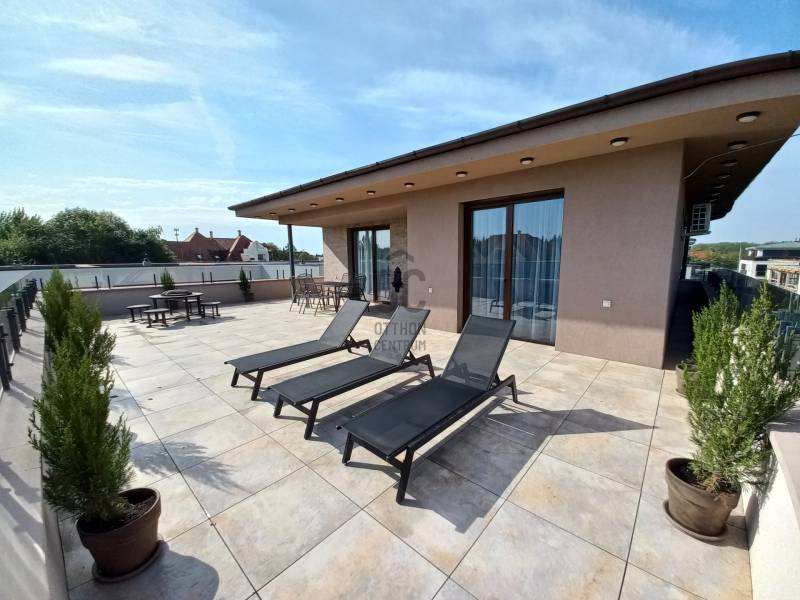 Debrecenben a Nagyerdő mellett a Nyulas városrészén, új építésű lakóparkban, újonnan épült, társasház nappali+ 3 hálószobás Penthouse lakása kiadó.Minőségi kivételezés mellett nagy hangsúly kerül az esztétikus megjelenésre is.Társasház paraméterei:- frekventált elhelyezkedés, elegáns környezet- lifttel rendelkezik,- 6 lakásos kis lakóközösség- teremgarázs az alsó szinten- közös társasházi kert kerül kialakításra- fűthető gépkocsi felhajtóA lakás paraméterei:- igazi luxus életérzés, egyedüli lakás a 2. emeleten, ezért Ön élvezheti otthonában a közvetlen lift kapcsolatot, melyet csak a jogosutak használhatnak- 98 nm hasznos alapterülethez tartozik 9 nm fedett terasz és 104 nm - s panorámás tetőterasz- terasszal közvetlen kapcsolatos, tágas világos nappali étkezővel és konyhával- 3 hálószoba melyből egy saját fürdőszobával rendelkezik, kettő pedig közvetlen kijárattal a teraszra- külön fürdőszoba káddal, zuhanyzóval- magas minőségű, hidegburkolatok a lakás minden részén- 3 rétegű hőszigetelt műanyag nyílászárók, melyek motoros alumínium redőnnyel és rovarhálóval lettek ellátva- padló fűtés az egész lakásban mely gázkazánról üzemel,- hűtés és kiegészítő fűtési lehetőséget a 4 db GREE hűtő-fűtő klíma melyhez H- tarifa tartozik- modern megoldások a mennyezeti világítás kialakításánál- telefonról is vezérelhető motoros alumínium redőnyök- a terasz száraz burkolattal ellátott, kiváló vízelvezetési megoldás.Ugye máris birtokba venné, ne habozzon hívjon és nézze meg személyesen!Szerződéskötéshez: 2 havi kaució és egy havi lakbér szükséges.Debrecen, Kiadó, Luxus, penthouse, terasz, erkély, lakás, bútor, új, prémium,