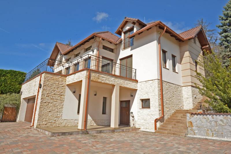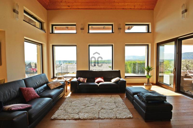 Alap adatok:- 1743 nm telekterület.- Két helyrajzi szám. ( 892+851 nm)- 2016-ban épült 3 szintes panorámás luxus családi ház, 4 lakószobával, panorámás nappalival,342 nm hasznos alapterülettel.- 60 nm-es panorámás terasz.- 4 autó részére garázs elektromos töltőfejekkel.- 6 autó részére gépkocsi beálló.- Fedett úszómedence, - 6 Kw szaldós napelem rendszer.- Hőszivattyús, elektromos, gáz és vegyes tüzelésű fűtés ki van alakítva és igény szerint kombinálható.- A világ legbarátságosabb full panorámás nyári konyhája tetővel, pultokkal raktárhelyiségekkel.- Elvehetetlen panoráma a Dunakanyarra- Egy 28 nm-es két szobás vendégház a másik helyrajzi számú telken.Verőce kis település a Duna bal partján 4160 lakossal. Budapest belvárosától a távolság 36 km légvonalban. 52 km közúton, mely gépkocsival kb. 1 óra. Vonattal Budapest Nyugati Pályaudvarról Verőce vasútállomásig Z70-es zónázó vonattal 31 perc.A telkek a település központjától 50 méterre, a vasútállomástól 200 méterre, a Duna partján lévő sétánytól 250 méterre, a kezdődő domboldalon helyezkednek el. Teraszos kialakítással különülnek el egymástól. Az alsó telek talajfeltöltésének köszönhetően mindkét ingatlan kertjéből örök panoráma nyílik a Dunakanyarra és a szemközti Pilis hegyvonulatára. Két telek, két helyrajzi szám, két utcai kapu, két külön közmű bekötés. Dologösszességben akarjuk értékesíteni a két telket.Az alsó telek 892 nm-es, a feltöltésnek köszönhető nagyrészt sík területekkel rendelkezik, rajta 3 szintes, szintenként 100 nm alapterületű családi házzal, melynek építését 2015 ben kezdték, a használatba vételi engedélyét 2019-ben adták ki. A földszinten a fűtött garázsfeljárón keresztül egy sík gépkocsibeálló mögött közel 60 nm -es, négy gépkocsi tárolására alkalmas garázs helyezkedik el, benne elektromos autók gyorstöltésére alkalmas fejegységgel. Mögötte 15 nm-es bortároló található. A földszinti folyosóról nyílik egy 10 nm-es helyiség, ahol a szauna előkészítés és egy zuhanyzó kap helyet. A szauna ezidáig nem került beépítésre, jelenleg raktárként funkcionál. A földszinten még egy különálló wc is ki lett a alakítva, ami az előszobából nyílik.Az első emeletre lépcsősor vezet, ahol egy 5.5 méteres belmagassággal rendelkező, hatalmas üvegablakokkal a Dunakanyarra panorámás nappali szoba található, ahonnan a szintén Dunai panorámás, közel 60 nm alapterületű teraszra juthatunk ki. A terasszal egy szintben van a gondozott pázsitos kert, ami egy támfallal különül el az alatta lévő telektől, a rajta lévő ház fölé emelve azt. A kertből szintén korlátlan a panoráma.A nappali szobából nyíló konyha és kamra a földszint és az első emeleti előkert közti rézsűs virágoskertre néző ablakokkal rendelkezik. Az első emeleti nappaliból nyílik az a háztartási helység, ahol a mosógépek és az épület gázcirkóval valamint hőszivattyúval kombinált fűtés és meleg víz rendszerének gépészete található.A nappaliból nyílik a szülői háló, melynek saját fürdőszobájában pezsgőfürdős kád, dupla mosdókagyló és wc kap helyet.Az első emeleti terasz és kert szintjén található az épület mellett jobb oldalt elterülő telekrész, ahol egy fedett kültéri konyha, és a hozzá tartozó 15 nm-es külső tároló kap helyet. Az oldalfalak nélküli konyhából elvehetetlen panoráma nyílik a Dunára és a környező hegyekre. A külső konyha hátsó oldalfalát a mellette lévő telek szinteltolását tartó támfal adja. A külső konyha tetőszerkezetén találhatóak az a napelem rendszer, mely a szaldós áram visszatáplálási rendszer gerincét alkotja. Az épület első emeletének szintjén a ház mögötti kertrészen van kialakítva az a csúsztatható boltíves polikarbonát tetővel ellátott kültéri medence, mely ellenáramoltatóval, fűtő berendezéssel és nagy teljesítményű vízforgató és homok alapú szűrőberendezéssel van ellátva. A medence melletti kültéri zuhanyzó alatt található a medence gépészeti egysége, míg a belépő vízrendszer központja a medence melletti tároló épületben helyezkedik el. A medence mellől indul az a széles lépcsősor, mely a fölötte lévő telekre vezet, mely ettől a szinttől egy támfallal különül el.A ház harmadik szintjén a nappalival egy légtérben, onnan a nappali ablakain keresztül a Dunakanyarra panorámás felső galéria kap helyet, ahonnan a harmadik szint három lakószobája érhető el. A ház jobb felében lévő két különálló szobához egy zuhanyzós fürdőszoba tartozik, míg a ház bal oldali részén lévő nagyobb hálószoba önálló zuhanyzós fürdőszobával rendelkezik.Az épület elektromos redőnyökkel szerelt. A fűtést és a meleg víz ellátást gáz cirkó és hőcserélős fűtőberendezés kombinált használatával lehet megoldani, mely lehetőséget biztosít arra, hogy az éves gázhasználatot a támogatott lakossági mennyiség alatt lehessen tartani. A szaldós napelem rendszernek köszönhetően elektromos gépjárművek töltése és a hőcserélős fűtési rendszer üzemeltetése mellett is a lakossági támogatott szint határértéke alatt tudják tartani a fogyasztást a jelenlegi tulajdonosok.A felső 851 nm-es, enyhén emelkedő telek. Rajta 28 nm alapterületű két hálószobás, zuhanyzós fürdőszobával, wc-vel és külső tárolóval ellátott vendégház áll, mely jelenleg irodaként funkcionál. Fűtése gáz konvektor és elektromos padlófűtés, de újonnan épült vegyes tüzelésű kémény már rendelkezésre áll, akár kályhának akár kandallónak. A telek ősfás, egyik részén gondozott, futtatott szőlőtőkékkel. Az alatta lévő telektől egy támfal választja el, melyben beép