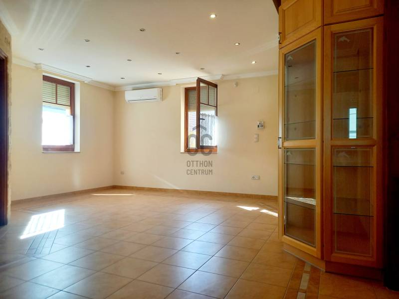Baján, a belváros közelében eladó egy 86 m²-es, téglaépítésű társasházi lakás az első emeleten.A lakás belsőleg kétszintes kialakítású, így tökéletes választás családoknak vagy fiatal pároknak, akik tágas, modern otthonra vágynak.Az 52 m²-es alsó szinten:-tágas nappali–konyha–étkező egy légtérben,-külön nyíló hálószoba,-fürdőkádas fürdőszoba, külön WC–kézmosó,-valamint egy 8 m²-es erkély található.A 26 m²-es tetőtérben:-külön nyíló hálószoba saját zuhanyzóval és WC-vel.Főbb jellemzők:-kiváló állapot, azonnal költözhető, tehermentes-gázcirkós padlófűtés, a melegvizet is a kazán biztosítja- hütő-fűtő klíma-egyedi mérőórák, alacsony rezsiköltség-250 cm belmagasság, világos, délkeleti fekvés-minőségi, egyedi készítésű beépített bútorok és beépített konyhagépek (gázfőzőlap, elektromos sütő, mosogatógép) a vételár részét képezik-fa nyílászárók, kétrétegű üvegezéssel, mindenhol elektromos redőnnyel és szúnyoghálóval ellátva.Ez a lakás tökéletes választás mindazoknak, akik rendezett környezetben keresnek igényes, otthonos lakást – ahol minden adott a kényelmes mindennapokhoz.Ne hagyja ki ezt a lehetőséget – tekintse meg személyesen, és szeressen bele!