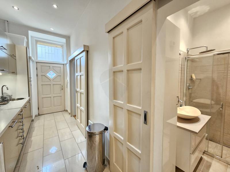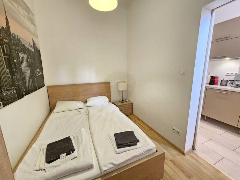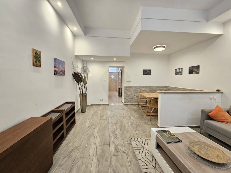 ELADÁSRA kínálunk egy 40 m² alapterületű, 1+1 szobás tégla építésű lakást Belső-Erzsébetváros szívében, a Holló utcában. Kiemelkedő LOKÁCIÓJA miatt egyedülálló BEFEKTETÉSI LEHETŐSÉG!A méltán híres Király utca a befektetők álma, hiszen ez a nagybetűs BELVÁROS. A Deák tértől néhány perc sétára, a turisták által sűrűn látogatott Gozsdu udvar szomszédságában található az ingatlan, ahonnan a belváros minden fő látványossága (pl. a Bazilika, a Dohány utcai Zsinagóga, a Váci utcai Fashion Street) és számtalan szórakozási lehetőség karnyújtásnyira van. A kiváló közlekedés (M3-as és M1-es metró, számos villamos és autóbuszjárat) már csak hab a tortán!A lakás az első emeleten található, lift nincs az épületben.Az ingatlanba belépve a világos előtérbe érkezünk, tőlünk balra találjuk a hálószobát, előttünk pedig a konyha kapott helyet. Tovább haladva bal oldalt nyílik az igényesen felújított fürdő, beépített szagelszívóval, egyenesen pedig a tágas nappali. Itt igényesen kialakított álmennyezetbe épített világítás és délnyugati fekvésű modern műanyag ablakok biztosítják mindenkor a fényt a térben. Praktikus alaprajza miatt akár kedv szerint alakítható. Az eredeti 3.8 méteres belmagasság lehetőséget biztosít galéria kialakítására is a nagyobb helyigényű tulajdonos számára.Az ingatlanban klímaberendezés, illetve (minden helyiségben) elektromos fűtőpanel biztosítja a megfelelő hőmérsékletet lakói számára. A lakáshoz tartozik Airbnb engedély, mely tovább szélesíti a befektetési lehetőségek palettáját.A közös költség havi 17.600 Forint, mely tartalmazza a vízfogyasztást. A lakásban található bútorok megállapodás szerint a vételár részét képezik, igény szerint a tulajdonos vállalja elszállíttatásukat.Az ingatlan tehermentes, 1/1 arányú tulajdonossal, azonnal birtokba vehető.Ha az ingatlan felkeltette érdeklődését keressen bizalommal, szívesen mutatom!!!