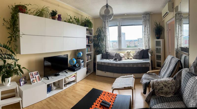 Megvételre kínálunk a 15. kerületben, Újpalotán egy 14. emeleti, 2+1 szobás panellakást, lenyűgöző panorámával a Budai-hegyekre.A lakás tulajdoni lap szerint 53 m², azonban az előző tulajdonos a társasház engedélyével kb. 3 m²-rel megnövelte a területét a lépcsőház irányába, így tágasabb előszoba került kialakításra.Főbb jellemzők:- Ablakos konyha, örök panorámával.- Két különnyíló szoba, igény esetén újra összenyitható – így a lakás akár körbejárhatóvá is tehető.- Külön fürdőszoba és toalett.- Klíma gondoskodik a kellemes hőmérsékletről a nyári hónapokban.- Egyedi mérős távfűtés, kedvező rezsivel.- Műanyag nyílászárók.- Teher- és személylift is rendelkezésre áll.Költségek és parkolás:- Közös költség: 15.000 Ft/hó.- Parkolás: az utcán ingyenes parkolási lehetőség biztosított.Közlekedés és környék:- Kiváló tömegközlekedés: 7, 7E, 8E, 133E, 96, 296 buszok, valamint a 69-es villamos.A közelben: vásárcsarnok, Pólus Center, Ázsia Center, boltok, gyógyszertár, orvosi rendelő, pékség, posta, iskola, óvoda, bölcsőde, játszótér és állatorvosi rendelőEgyéb információ:A lakás világos, jól alakítható, rendezett társasházban található, kulturált lakóközösséggel. Bármely korosztály számára ideális választás – akár első otthonnak, akár befektetésnek is kiváló lehetőség.