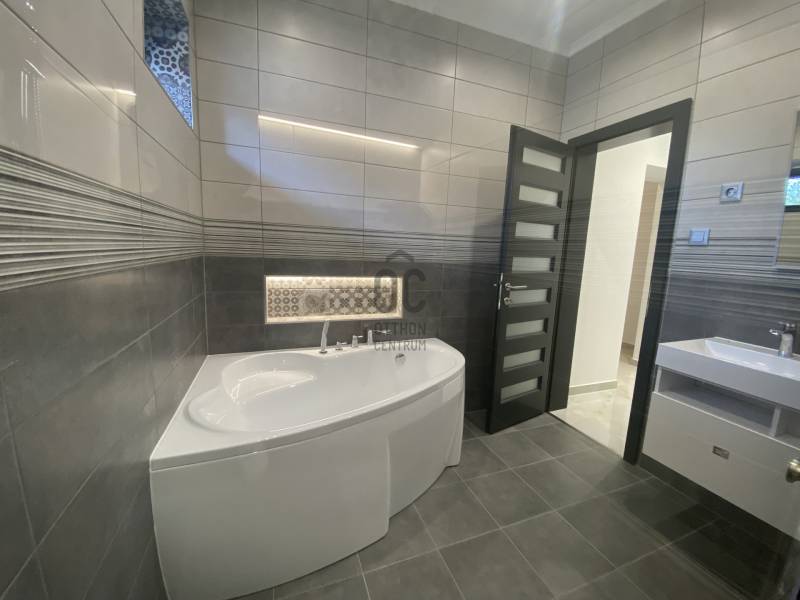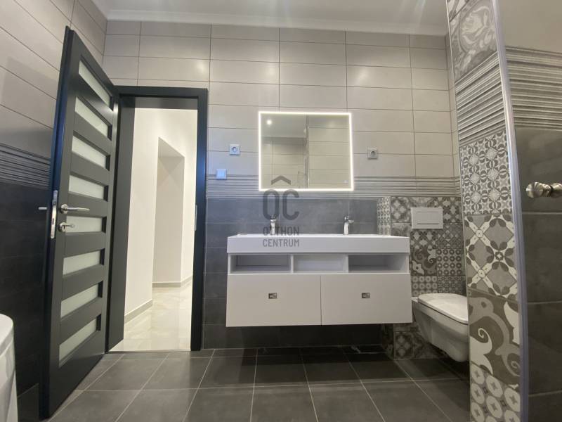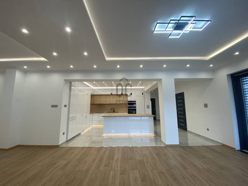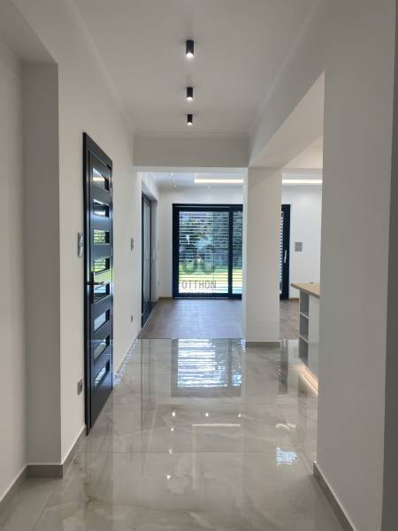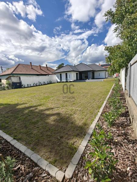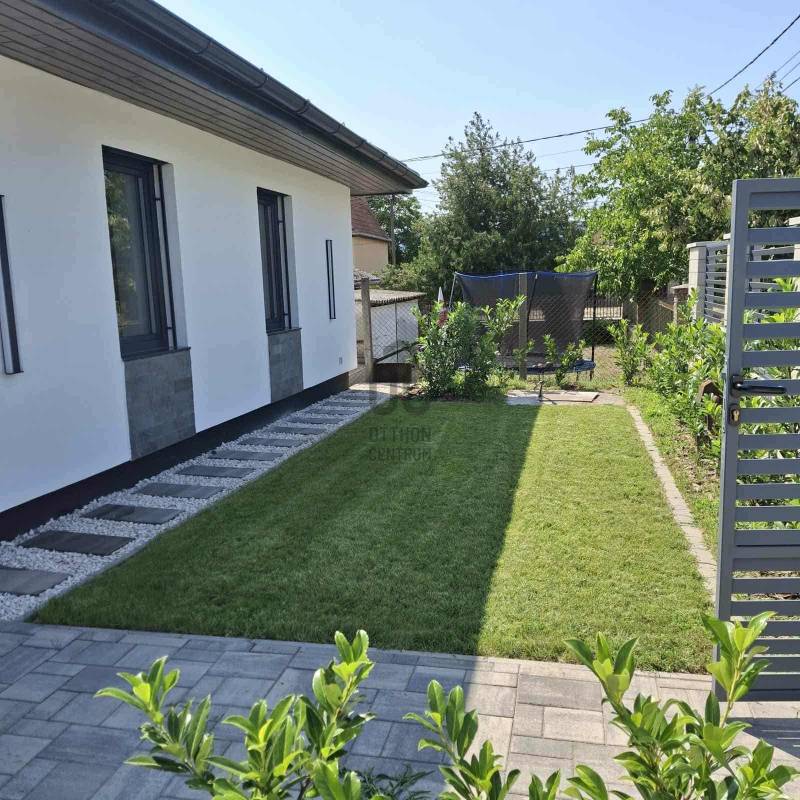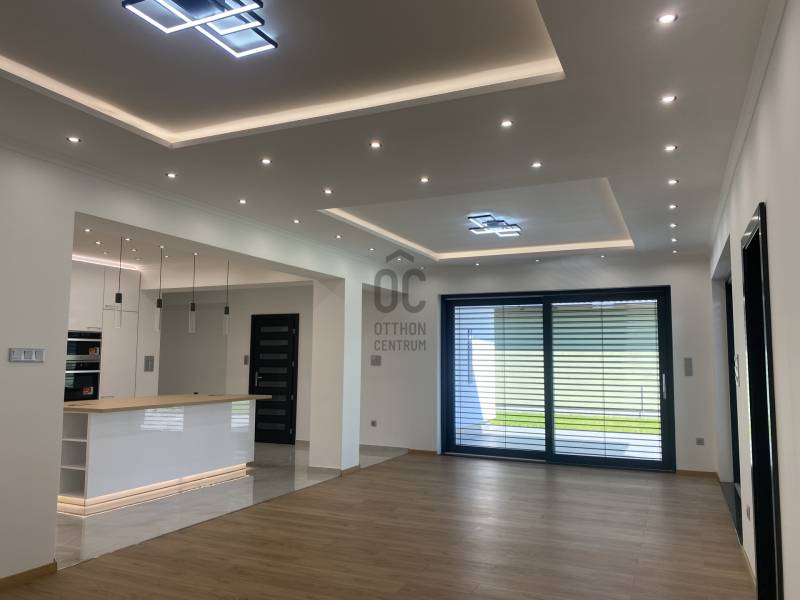 Sződliget az északi agglomeráció egyik legkedveltebb települése, egy tüneményes kertváros Budapesttől mindössze 25perces autóútra Dunakeszi és Vác között. Lakói és városvezetése igyekezett megőrizni falusias báját, így az ide látogatók szellős utcákat, egészséges méretű kerteket, virágok ölelte köztereket találnak, nyoma sincs zsúfoltságnak, egymást érő lakóparkoknak. Gyönyörű Duna-partja és remek közlekedési lehetőségei miatt az elmúlt évek egyik dobogós választásává tették a kiköltöző családok.Itt, a város egyik autentikus utcájában, kiviteleződött egy nem csak megjelenésében, hanem funkciójában is TÖKÉLETES OTTHON.Unalmas, és közhelyes ezt írni, ugye? Főleg, ha újépítésű házról olvasunk...- De mi van, ha a klisé életre kel?Lássuk, milyen a tökéletes Otthon?!-KORSZERŰ, FENNTARTHATÓ: hőszivattyús fűtés-hűtés (padlófűtés+mennyezet) napelemrendszer, elektromos autó töltő (11kW), 3rétegű thermoüveges nyílászárók, elektromos zsalúziarendszerrel, homlokzati és födém hőszigetelés, kertben automata öntözőrendszer, elektromos kapu, beépített konyhai gépészet valamint világítástechnika A++, ahogy a ház energetikája is!- EGYSZINTES: minden korosztálynak megfelelő, hosszútávra tervezhető, nem kell megszabadulni tőle ha kirepülnek a gyerekek-LETISZTULT: az antracit-fehér homlokzati színkombináció élét otthonossá lágyítja a sátortető, a garázs körüli kőburkolat diszkréten olvad a térbe és alkot harmóniát, semmi cicoma, nincs feltűnés csak modern, időtálló, klasszikus megjelenés. A belső terekből üvölt az elegancia, a magafényű fehér, szigettel ellátott konyha diszkrét szerelékekkel, skandináv stílusú térben megtört kialakítással, rejtett kamrával, rengeteg tárolóhellyel, a fürdőszobák burkolatválasztása, a nyílászárók minősége mind prémium, mégsem harsog, hanem szolgál, - hazatérni hív!-FUNKCIONALITÁS: minden élettér ÉLETRE VAN SZABVA, nincsenek 8m2-es szobák, a garázsban valóban elfér egy autó akkor is ha salgópolcrendszer kerül be a családi SUP flotta mellé. Kamrának nem egy lépcső alatti holtteret ad a kivitelező, hanem ablakos, kihasználható helyiséget, ahova fagyasztóláda, mosókonyha, de méretéből adódóan home office is kerülhet :) Az elrendezés OKOS, a hálószobák egymástól szeparáltan kerültek kialakításra, a szülői lakrész gardróbszobával és privát fürdőszobával rendelkezik, a közlekedőfolyosón vendég illemhely került kialakításra. A garázs előtt és mellett viacolor, a ház előtti utcafront kultúrált, a kerítés gondozásmentes Semmelrock-EXTRÁK: Katalógusba illő konyhaszigetes konyhabútor teljes gépesítéssel (Whirlpool), funkcionális és design fényelosztók, olasz kerámiák, fatokos beltéri ajtók, fürdőszobák PLAFONIG BURKOLVA, RAVAK szaniterek, szegélyezés végigfut, KANDALLÓ KIALAKÍTÁSI LEHETŐSÉG,zsalúziarendszer elektromos, központi világításkapcsolók, elektromos kerti és garázskapu, 11kW autótöltő, beállók viacoloros kialakítása, kertben automata öntözés, telepített babérmeggy sövényJöjjön el, tekintse meg, ha elege van a silány módon kivitelezett low budget házakból, ahol még milliókat kalkulálhat arra, hogy új otthona élhető legyen a hétköznapokban, ha EGYSZERŰEN EXTRA Otthonra vágyik, mely a szemnek gyönyörű a családot pedig maximálisan kiszolgálja!