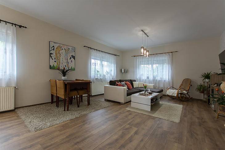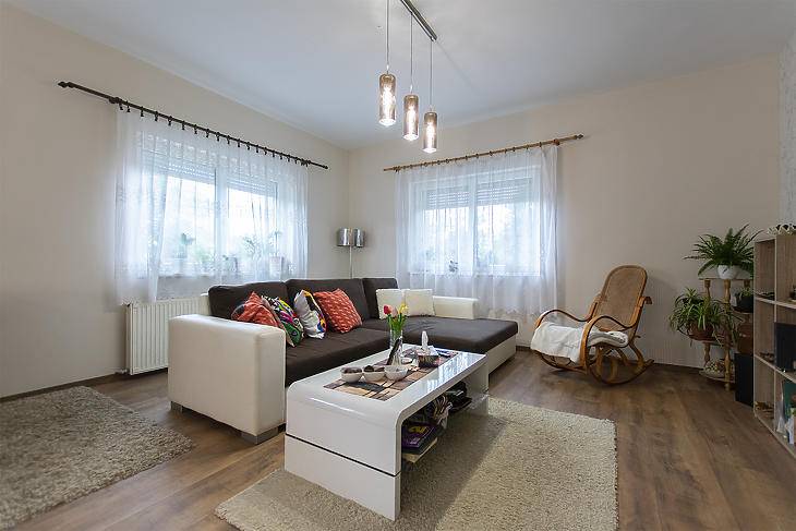 A belső terek praktikusak és otthonosak: 2 külön nyíló szoba és egy tágas, amerikai konyhás nappali biztosítja a kényelmet. A fűtést vadonatúj gázcirkó adja, a házhoz pedig egy 16 négyzetméteres, fedett terasz és két pince tartozik (36 és 15 négyzetméteres), így elegendő tárolóhely áll rendelkezésre. Az épület betonfödémes, így a tetőtér opcionálisan beépíthető a későbbiekben. A telek 532 négyzetméteres, a gondozott kert barátságos hangulatot áraszt, tökéletes pihenésre vagy családi összejövetelekhez. Az ingatlan elhelyezkedése kiváló: nyugodt, zöld környezet, mégis könnyen megközelíthető, közel a természethez és a város kényelméhez. A közelben megáll a 71-es és 152-es busz amikkel rövid időn belül a kerület központjába juthatunk.