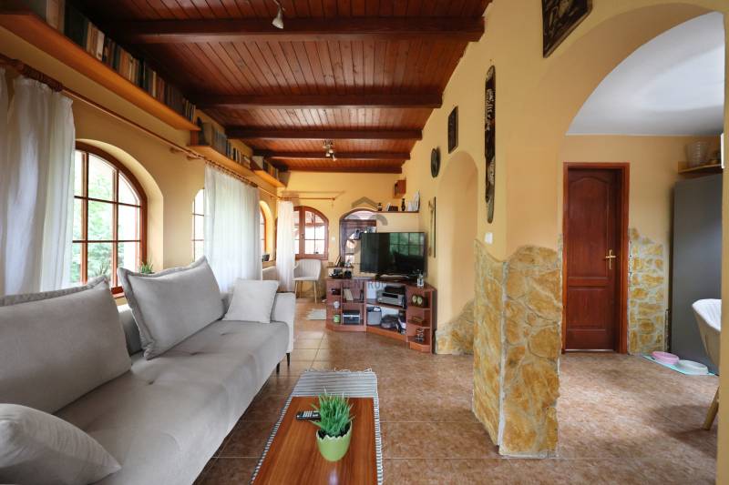 Eladó egy örökpanorámás, 3 szintes, 153 m²-es családi ház, amely egy 625 m²-es, gondosan ápolt telken várja új lakóit. A kert tele van élettel: gyümölcsfák, virágok, és egy kis erdei házikó a gyerekeknek – igazi mesevilág!Ha olyan helyet keresel, ahol a madárcsicsergés a háttérzene, a mókusok a szomszédok, és a százéves fenyők árnyéka véd a nyári melegben, akkor ez az otthon pont neked való.Veresegyház mellett, Erdőkertesen, egy csendes, forgalomtól mentes utcában található, közvetlenül az erdő szélén.A netto 138,5 m²-es ház három szinten kínál tágas, világos tereket és otthonos hangulatot:A földszinten: előszoba, nappali, étkező, konyha és egy közel 15 m²-es szoba.Az emeleten: egy hatalmas, 31 m²-es háló, amely akár két külön szobává is alakítható.A legalsó szinten: egy világos, 27 m²-es szoba, külön wc, valamint egy nagy, sarokkádas fürdő, ahol már elő van készítve a szauna – akár wellness- vagy kondiszobaként is használható.A szint az udvarból is megközelíthető, így a ház tökéletes kétgenerációs otthonnak is.A kertben 8x4 méteres, 1,5 mély medence várja a családot, a fedett 29 m²-es terasz pedig ideális hely a közös reggelikhez vagy esti beszélgetésekhez.A ház 1985-ben épült, majd 2007-ben teljeskörűen felújították: új vezetékek, fa nyílászárók, 7 cm dryvit szigetelés, a padláson pedig 10 cm kőzetgyapot gondoskodik a melegről.A fűtést Sanier Duvall gázkazán biztosítja, a rezsi baráti, havi kb. 35–40 ezer Ft.A környék nyugodt, barátságos, a természet közvetlen közelében, ugyanakkor pár perc sétára van iskola, óvoda, buszmegálló és bolt – minden, amire egy családnak szüksége lehet.Egy ház, ahol a gyerekek szabadon szaladgálhatnak, ahol a kertben fák nőnek, és ahol esténként a teraszról nézhetitek a naplementét az erdő felett.Ugye, Te is el tudod képzelni itt a mindennapjaidat?! Hívj bátran – akár hétvégén is!Ez az otthon már csak rád és a családodra vár.