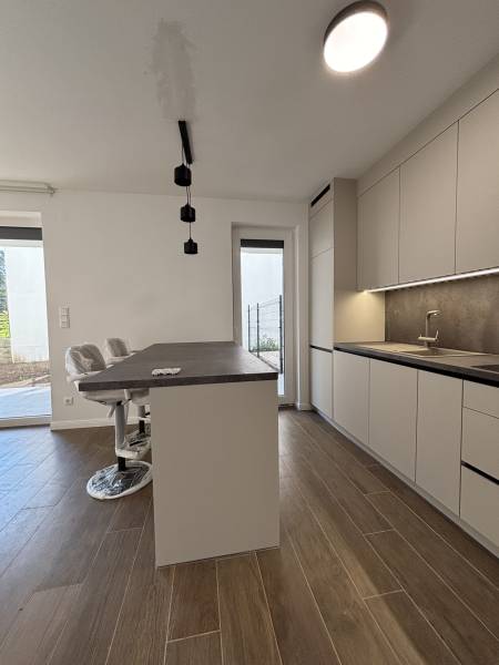 76 m² | 13 m² terasz | saját kert | garázs + tároló | hőszivattyú | azonnal költözhetőAz ingatlan leírásaEladó Törökkőn, egy vadonatúj, négylakásos társasház földszintjén elhelyezkedő, 76 m²-es, kertkapcsolatos lakás.A lakáshoz tartozik egy 13 m²-es tágas terasz, egy saját, elkerített kertrész, valamint a terem garázsban egy beállóhely és egy önálló, zárható tároló.A lakás soha nem lakott, azonnal költözhető, modern és fiatalos stílusban került kialakításra.A belső tér tágas nappali–étkező–konyha együttesből, két hálószobából, külön fürdőből és mellékhelyiségből áll. A konyha vadonatúj, beépített konyhabútorral és konyhaszigettel rendelkezik, a gardróbok szintén beépítettek.⚙️ Műszaki felszereltség-Hőszivattyús padló- és mennyezetfűtés – energiatakarékos, egyenletes hőérzet-Mennyezethűtés – a nyári hónapokban klímakomfort zaj és huzat nélkül-Műanyag, hőszigetelt nyílászárók-Videós kaputelefon-Beépített konyhabútor konyhaszigettel-Teljesen felszerelt fürdő és mellékhelyiségek szaniterekkel-Beépített gardróbszekrények-Saját, zárható tároló + garázshely a mélygarázsbanA lakás minden eleme új, soha nem használt, a színek és burkolatok modern, letisztult, trendi árnyalatokban készültek.A környék leírásaA társasház Óbuda egyik legkedveltebb, családbarát részén található.Csendes, zöldövezeti utcák, kis forgalmú zsákutcák és barátságos hangulat jellemzi a környéket.A mindennapi élethez szükséges szolgáltatások kényelmes sétával elérhetők:-Lidl – 2 perc-Tesco, Posta, Jysk – 4 perc-busz megálló – 2 perc séta (kapcsolat a fonódó villamoshoz, Flórián térhez)-GoBuda Center, Stop Shop, Media Markt, Praktiker – 2 buszmegálló, autóval 5 percA közelben kirándulóhelyek, lovardák, iskolák és óvodák találhatók – kiváló infrastruktúrával rendelkező, biztonságos, nyugodt lakókörnyezet.LakóközösségA négylakásos ház csendes, rendezett és családias közösségű.Az SZMSZ állatbarát, tehát kiskutya és cica hozható – ideális választás kisállat-tartóknak is.A társasház karbantartott, igényes, hosszú távra tervező tulajdonosokkal.Kinek ajánljuk?Ez a lakás ideális választás azoknak, akik:-új építésű, azonnal költözhető otthont keresnek,-nem akarnak felújítással bajlódni,-fontos számukra a kertkapcsolat, a nyugalom és a modern technológia,-vagy befektetésként keresnek könnyen kiadható, értékálló ingatlant.✨ Összefoglaló✅ 76 m² földszinti lakás✅ 13 m² terasz + saját kert✅ Hőszivattyús padló- és mennyezetfűtés, mennyezethűtés✅ Beépített konyhabútor és gardrób✅ Videós kaputelefon, új szaniterek✅ Saját tároló + garázshely✅ Csendes, családias környékHa egy modern, minőségi otthont keresel, ahol minden részlet a kényelmedet szolgálja, hívj bizalommal – ez az ingatlan Téged vár!