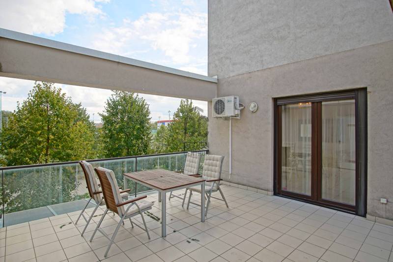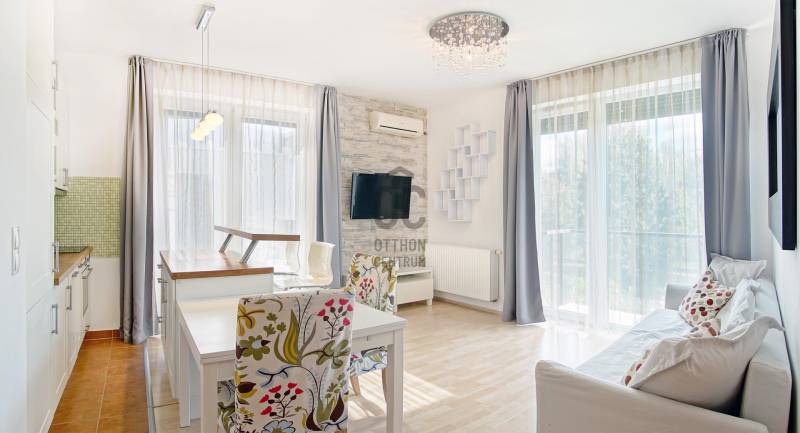 Kényelem és zöldövezeti nyugalom találkozik ebben a XIII. kerületi, Rozsnyay utcai otthonban. A 61 m²-es, amerikai konyhás nappalival és három hálószobával rendelkező lakás a családbarát elosztása és a tágas kültéri terei miatt egyaránt különleges.A LAKÁS JELLEMZŐI- nettó 61, bruttó 77 m² alapterület- amerikai konyhás nappali + 3 hálószoba- 25 m² nagy terasz, további két erkély- 7 m² tároló a teraszról nyílva- kádas fürdőszoba WC-vel- vendég WC kézmosóval- házközponti fűtés egyedi méréssel- légkondicionáló, redőny, szúnyogháló- gépesített konyha, szigetes konyhabútor- beépített szekrények, gardróbok- riasztó és biztonságos lakóparki környezetA HÁZ ÉS KÖRNYEZET- 2013-ban épült, liftes társasház- közösségi kerékpártároló a földszinten- rendezett és biztonságos, kamerarendszerrel felszereltKÖRNYÉK ÉS LOKÁCIÓ- a társasház közvetlen szomszédságában található a Rákos-patak sétánya futópályával, kerékpárúttal, sport- és játszóterekkel, kutyafuttatóval- a Vasas sporttelep néhány lépésre elérhető- bevásárlási lehetőségek (Duna Plaza, LIDL, ALDI, Tesco, CBA) pár perc távolságra. A közlekedés kiváló, M3-as metrómegálló és több buszjárat gyorsan elérhetőPARKOLÁS- a lakáshoz tartozik egy teremgarázs hely, amely megvásárolandó 7 millió forintért- könnyen parkolható, biztonságos helyet kínál az autójánakEZ AZ OTTHON IDEÁLI VÁLASZTÁS:- családoknak, akik értékelik a több hálószobás elosztást,- sportos, aktív életmódot kedvelőknek,- kutyásoknak és természetkedvelőknek, akik közvetlenül a zöldövezet mellett szeretnének élni.A lakás azonnal költözhető, igényes kialakításának és tágas teraszainak köszönhetően igazán különleges otthont kínál a XIII. kerület egyik legjobb részén.Várom hívását a hét bármely napján!Ez az ingatlan a \"Hűség csomag\" megbízási portfólióhoz tartozik. Részletek az Otthon Centrum weboldalán.
