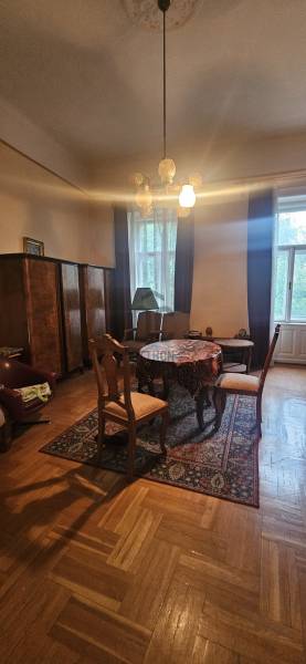Nyugati téren, gyönyörű, 19. században épült házban eladó egy 1. emeleti 156 nm-es, tágas lakás.A polgári lakás jellemzői:- Tágas terek.- Nagy belmagasság.- Két lakássá alakított, de egybenyitható. ( Két bejárati ajtó, 4 szoba, 1 hall, 2 folyosó, 2 fürdő, 2 konyha)- Városi panoráma.- Irodának is kitűnő.- 4 méteres belmagasság.Ház jellemzői: - A 19. században épült ház kiváló állapotban van, polgári jellegének megfelelően szépen felújított.- Kilátás: 6 ablak a Nyugati tér panorámájára.- Tömegközlekedésileg is kitűnő az ingatlan elhelyezkedése. Nyugati pályaudvar, M3-as metró, villamosok (4-6) 1-2 perc sétára.- Bevásárlás: Westend Mall (2 perc séta)Amennyiben fontos Önnek a központi, mégis csendes elhelyezkedés, a jó közlekedés, ha szeretné, hogy vállalkozása felújított társasházban működjön, akkor erről nem maradjon le!Ez az ingatlan a \"Hűség csomag\" megbízási portfólióhoz tartozik. Részletek az Otthon Centrum weboldalán.