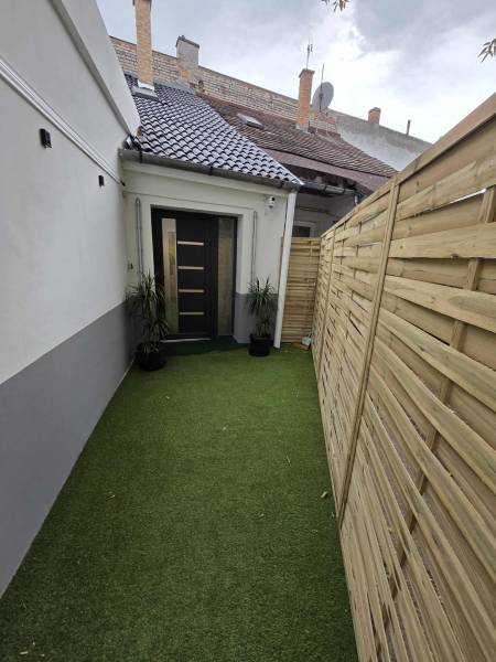 Újpest központjához közel eladóvá vált egy:- TELJES KÖRŰEN FELÚJÍTOTT (VEZETÉKEK, NYÍLÁSZÁRÓK, BURKOLATOK, TETŐ STB.)- KERTKAPCSOLATOS- 69 NM ALAPTERÜLETŰ- NAPPALI + 2 HÁLÓSházrész. Az ingatlan egy csendes mellékutcában található Újpest központjához közel. Néhány perces séta távolságra elérhetők a tömegközlekedési eszközök (busz, metró, villamos), újpesti piac, boltok stb. Az ingatlan fűtéséről gázkonvektor és hűtő-fűtő klíma gondoskodik.A telken 2 épületben 3 lakóegység található, az ingatlan osztatlan közös tulajdon, ez egyes lakrészek és a hozzájuk tartozó telek kizárólagos használati jogát ügyvédi használati megállapodás rögzíti. Az épületek az ingatlannyilvántartási térképmásolaton megfelelően fel vannak tüntetve, így a tárgyi ingatlan banki finanszírozással is megvásárolható.A kertben víz vételi lehetőség van és kültéri konnektort is felszereltek. Az új tulajdonosnak lehetősége van a földszinti hálószoba feletti lapostetőn egy tetőterasz kialakítására, akár úgy, hogy a tetőtéri szobából kijáratot nyit, akár a kertből felvezető külső lépcső megépítésével. Iá.: 84 M Ft