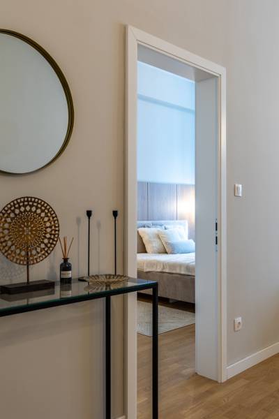 A klasszikus terek és a modern kényelem harmóniája. Üdv itthon!RÖVID ÖSSZEFOGLALÓBudapest V. kerületében, Hild tér mellett, a méltán kedvelt Október 6. utcában, 1845-ban épült, lift nélküli, kívül jó, belül átlagos, a lépcsőház pedig átlagon aluli állapotú társasház 2. emeletén, 102 m² alapterületű,utcára néző, nappali + 3 hálószobás, 2 fürdőszobás, kiváló állapotú, azonnal költözhető lakás. Ízléses, hangulatos, igazi otthon.LOKÁCIÓ – A város középpontjábanA múltat idéző, építészeti remekművek adta környezet a város lüktető szíve. Éttermek, kávézók, üzletek sokasága várja az itt élőket. Egyszerre kínál kulturális gazdagságot, kényelmet és inspiráló városi életérzést. A Duna-part, Szabadság tér, Erzsébet tér, Deák Ferenc tér, Bazilika 2 perc sétatávolságon belül.Benn vagyunk a központban mindenhez közel. Mindig tudunk magunknak izgalmas programot találni:- esti séta a Duna-parton- borbár a barátokkal- színház a kedvesünkkel- shoppingolás- kávé valamelyik helyi kávézóban- reggeli brunch az ArtizánbanA sort hosszasan lehetne folytatni.A kiváló elhelyezkedéséhez nem fér kétség, a kényelmes, biztonságos környezet garantált!AZ ÉPÜLET – Történelmi érték, rendezett miliőA XIX. század közepén épült társasház a klasszikus belvárosi polgári építészet egyik ékes példája. A homlokzat méltóságot sugároz, a tágas belső udvar hangulatos atmoszférát teremt, a lépcsőház pedig őrzi a korabeli építészeti részleteket. Bár lift nem található benne, a második emeleti elhelyezkedés könnyedén megközelíthető, ami tovább erősíti a klasszikus polgári jelleg autentikus hangulatát.Parkolni a környező utcákban (fizetős övezet) vagy bérléssel lehetséges.LAKÁS – Kortárs elegancia polgári alapokonA lakás teljes felújítása során a polgári szerkezet nagyvonalú arányait ötvözték a modern otthonok kényelmével és kifinomult esztétikájával. A nappali világos, tágas tér, amelyet a nagyméretű ablakokon át beáradó fény és a visszafogott színek harmóniája tesz különlegessé. A konyha elegáns fekete és natúr fa kombinációban készült, beépített gépekkel és rejtett világítással, amely egyszerre esztétikus és funkcionális. A három különnyíló hálószoba neutrális tónusokkal és természetes fa padlóval biztosít nyugodt, kiegyensúlyozott atmoszférát. A két fürdőszoba olasz burkolatokkal, modern szaniterekkel és LED-világítással készült – egyik káddal, másik walk-in zuhannyal, a legmagasabb komfortérzetet kínálva.MIÉRT KÜLÖNLEGES? Az utcára néző ablakokból minden nap a belváros gazdagon díszített homlokzatai tárulnak fel. Ez a látvány folyamatos párbeszédet teremt a lakás modern, letisztult belső világával: a klasszikus polgári építészet részletei és a kortárs design tiszta vonalai együttese ad különleges élményt, amely egyszerre idézi meg a múlt értékeit és a jelen kifinomultságát.MEGHÍVÓEz a 102 m²-es belvárosi lakás a klasszikus polgári hangulat és a modern elegancia tökéletes egysége. Egy olyan otthon, amely a város közepén biztosítja a kifinomult életteret, időtálló értéket képvisel és méltó választás mindazok számára, akik a belváros legjobb adottságait keresik.----------------------------------Díjmentes, bankfüggetlen hiteltanácsadással támogatjuk vevő ügyfeleinket a számukra legelőnyösebb finanszírozási döntések meghozatalában. Opcionálisan igénybe vehető kiegészítő szolgáltatásainkkal – mint ügyvédi közreműködés, energetikai tanúsítvány vagy villamos biztonsági felülvizsgálat – teljes körű szakmai támogatást nyújtunk az adásvétel folyamatának minden egyes lépésénél.A hirdetésben szereplő információk tájékoztató jellegűek. A tévedés és az árváltoztatás jogát fenntartjuk. Az esetleges elírásokért és technikai hibákért felelősséget nem vállalunk.Spacious Period Apartment in the Heart of DowntownWhere classical proportions meet modern comfort. Welcome home!SHORT OVERVIEWFor sale in Budapest’s 5th district, next to Hild Square, on the highly sought-after Október 6. Street: a 102 m² apartment located on the 2nd floor of a classic, 1845-built residential building (no elevator).The building’s exterior is in good condition, while the staircase and common areas are average to below average.The property itself is in excellent condition and ready to move into.It features a spacious living room, three separate bedrooms, two bathrooms, and street-facing windows.Elegant, warm, and truly feels like home.LOCATION – In the Heart of the CityA neighbourhood that captures the essence of historic Budapest — surrounded by architectural masterpieces, vibrant city life, and a rich cultural scene.Cafés, restaurants, and boutiques are just around the corner, offering both comfort and inspiration for urban living.The Danube River, Szabadság Square, Erzsébet Square, Deák Ferenc Square, and the Basilica are all within a 2-minute walk.Living here means being at the centre of everything — with endless possibilities just steps away:An evening stroll along the DanubeWine bar with friendsTheatre night with your loved oneA bit of shoppingCoffee at a local caféBrunch at Artizán Bakery…and the list goes on.The location speaks for itself: a safe, convenient, and elegant environment in one of the most desirable parts of the city.THE BUILDING – Historic Charm, Timeless AtmosphereBuilt in the mid-19th century, this classic townhouse is a fine example of downtown bourgeois architecture.The façade radiates dignity, the spacious inner courtyard creates a pleasant, intimate atmosphere, and the staircase retains original architectural details from the era.Although there is no lift, the second-floor location is easily accessible, preservin