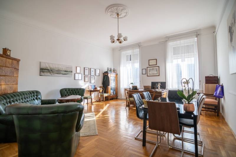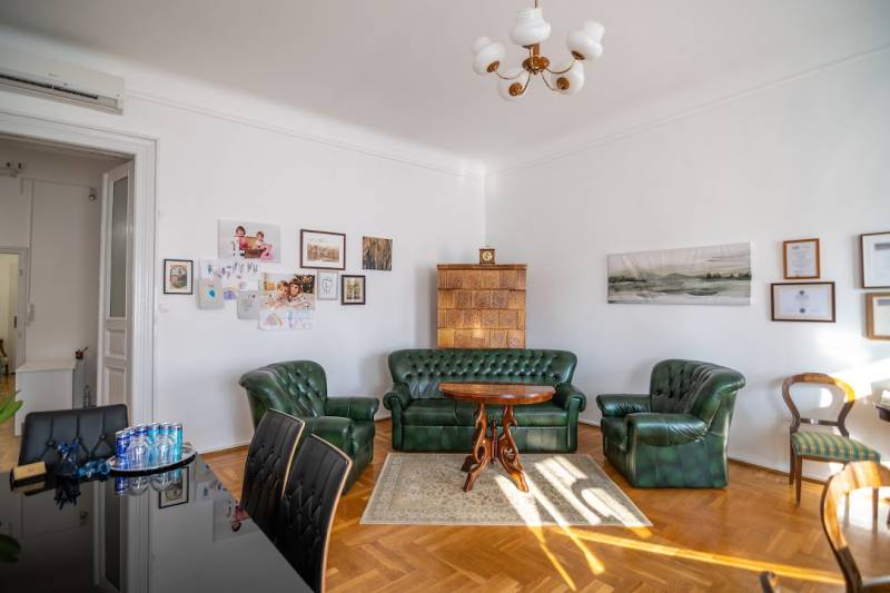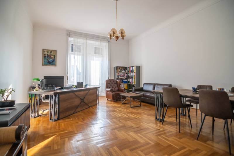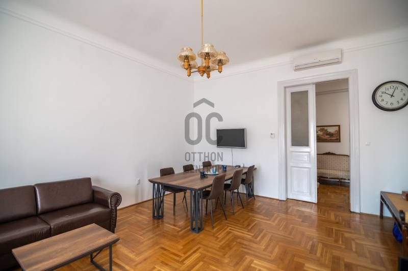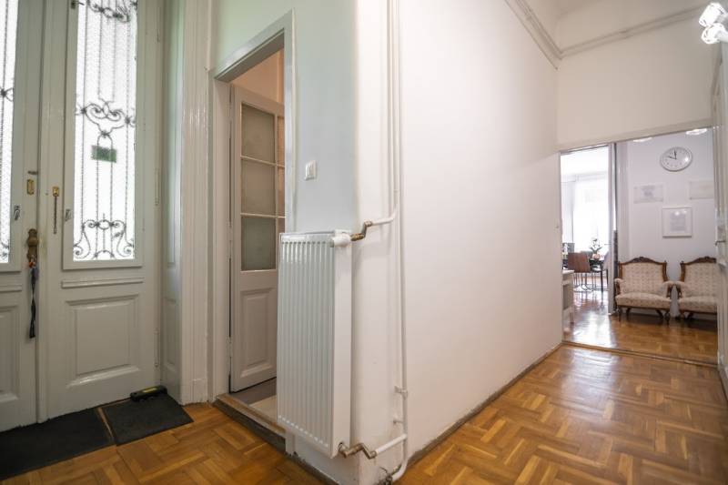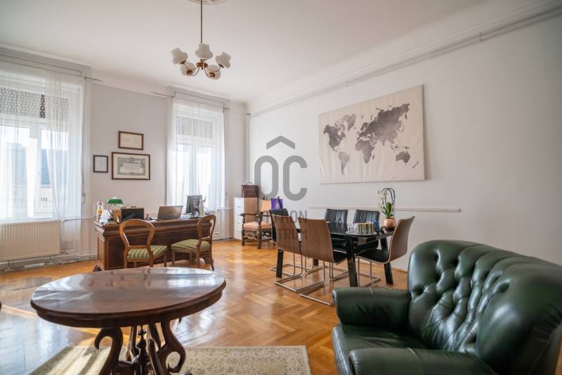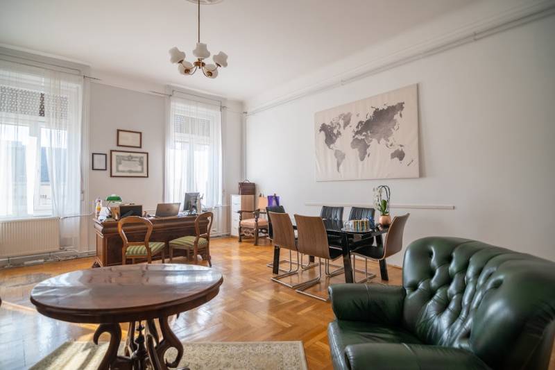 A nagyon szépen felújított 4. emeletes lakóház Hubert József tervei alapján épült 1898-ban.Az épületnek nemcsak a külső homlokzata impozáns, de belső udvari homlokzata is nagyon látványos. Az igényesen rendbe hozott épület a világörökség részét képezi, és közvetlen a világhírű Zsinagóga szomszédságában található.A lakás az épület 4.emeletén helyezkedik el. A liftből kilépve pár lépés után érjük el a lakás bejáratát. Addig is gyönyörködhetünk a belső udvar szépségében.A lakás 111nm-es ,hal+ 2 külön álló parkettás szobák, tágas előtér ahol jellenleg váróterem lett kialakítva, mert ügyvédi irodaként funkcionál. A szobák világossak és napfényesek, déli tájolásuknak köszönhetően.A szobákból egyedülálló kilátás nyílik a Zsinagógára.A ház folyamatos felújításokon esett át:2006-ban műszaki: villany- víz vezetékek és óra cserék2011-ben teljes tetőcsere, homlokzat, folyosó, lift, bejárati ajtóA ház rendjéről és tisztaságáról helyben lakó házfelügyelő gondoskodik.Lakás 2021- ben műszakilag teljes felújítást kapottFelújítások:- villany- víz- gáz vezetékek- mind a 3 óra ki lett cserélve- hűtő- fűtő klíma be lett szerelveLakás jellemzői:- téglaépítésű- belmagassága: 3.65m- 4. emelet/ lift van/- 111 nm- gázcirkó fűtés- + cserépkályha- hűtő- fűtő klíma- hal+ 2szoba- cserélt műanyag nyílászárok- 36-39nm amiből a nagyobb szobából+ 1 szoba leválasztható, mert dupla ablakos, és megosztható- konyha- előszoba- fürdőszoba+ káddal+ mosdó+ Wc- wc+ mosdó- kamra- korszerűsített lift- 10nm-es saját tároló- távirányítós kapu- jogfolytonosággal 1 parkoló tovább bérelhető havi 5000Ft-ért- közösköltség: 30.000Ft amiben a ház felújítási alap is benne vanA ház a belváros szívében, közvetlen a nemzetközi hírű Zsinagóga mellett található. Budapest városképének meghatározó épülete. Jellemző a környéken található épületekre, hogy neves építészek tervei alapján épültek és nagypolgári lakások sora található bennük.A környéken üzletek, éttermek, szórakozó helyek, bevásárlási lehetőséget biztosító üzletek sora található. De színház, mozi, bank és egyéb intézmények is bőségesen találhatók.Az utcában közlekedik a 74-es troli. De pár percre a háztól felszállhatunk a 2-es, 3-as metróra, a 47-es, 49-es villamosokra és a 7-es busz is a közelben jár. Egyszóval innen bárhová könnyen eljutunk tömegközlekedési eszközökkel.