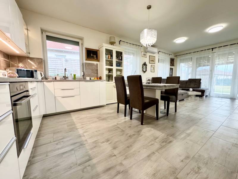 Budapest és Esztergom között a pilisi hegyek ölelésében található hangulatos településen, Pilisjászfalun újonnan, a Somlyó völgyi lakóparkban, csendes jelenleg még murvával borított összközműves mellékutcában, 800 nm-es saját kerttel rendelkező, 2020-ban épült, szigetelt, egyszintes, 71 nm-es lakóterületű, nappali + 3 háló szobás, amerikai konyhás, kamrás, közvetlen kert-teraszkapcsolatos, kiváló elosztású, külön nyíló szobás, napos-világos D-NY-i fekvésű, alacsony fenntartású, modern, kondenzációs gázkazán fűtésű, újszerű állapotú, klimatizált, riasztórendszerrel felszerelt ikerház fél, beépített, gépesített konyhával, 2 gépkocsi számára alkalmas felszíni gépkocsi beállóval, 8 nm-es kerti tárolóval, gondozott kerttel, eladó.A környék abszolút biztonságos, infrastruktúrája és közlekedése kitűnően ellátott.Budapest belváros (Nyugati pályaudvar) kényelmes közlekedéssel 1 óra alatt elérhető. Pilisjászfalui vasútállomás 1 km-re. A Budapest Árpád híd-Esztergom vonalon közlekedő 800-as autóbusz megállója 1,5 km-re. A településen található: bölcsőde, óvoda, általános iskola, háziorvosi rendelő, posta, élelmiszerbolt, játszótér, sportolási lehetőségek. Ajánljuk mindazoknak, akik egy kellemes hangulatú, emberléptékű házban szeretnének lakni, távol a város nyüzsgő forgatagától, tiszta levegőre, nyugalomra vágynak, de mégis Budapest vonzáskörzetében maradnának.Érdemes megnézni!További információkért és a megtekintéssel kapcsolatban várom megtisztelő hívását! (hétvégén is)EA