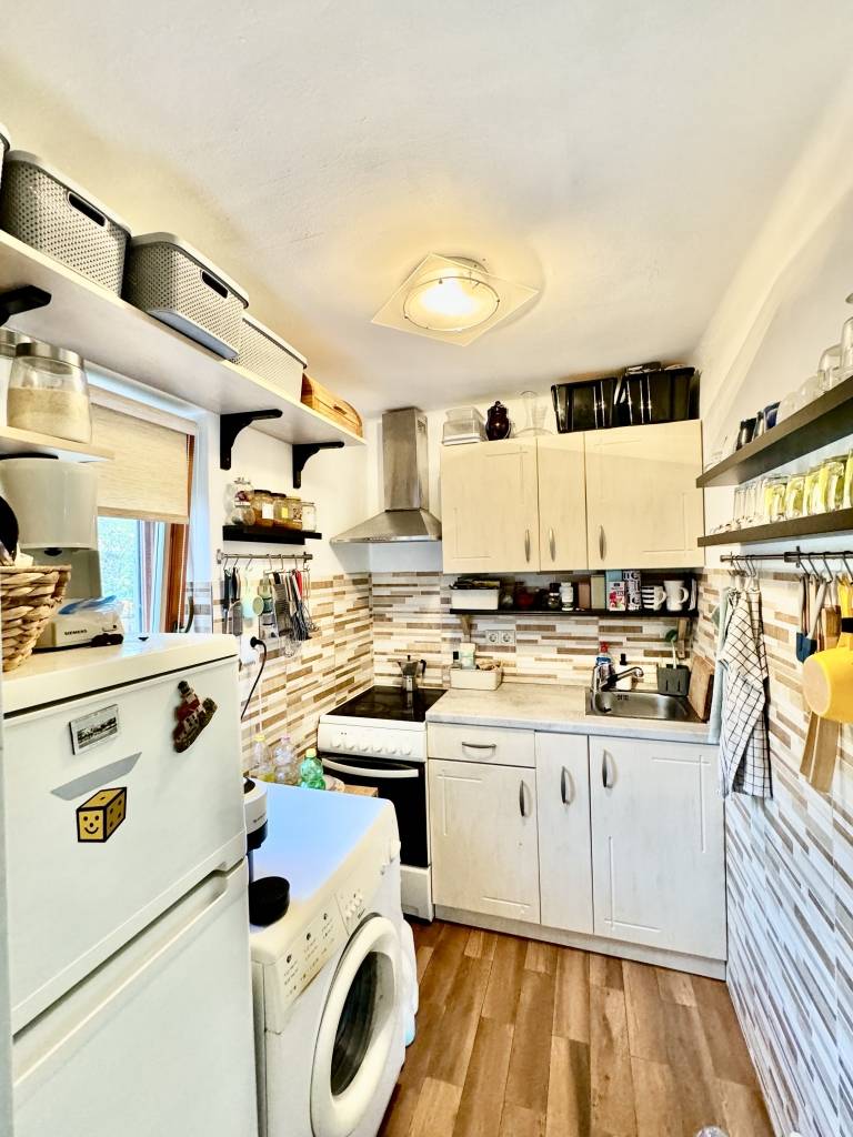 18,5 m²-es tágas szoba, amely térelválasztóval kényelmesen nappalivá és hálószobává alakítható úgy, hogy még is megmarad a térérzet. 4,1 m²-es konyha, ami elektromos tűzhellyel van felszerelve2,7 m²-es zuhanyzós fürdőszoba, aminek komfortjáról egy elektromos törülközőszárítós radiátor gondoskodik.