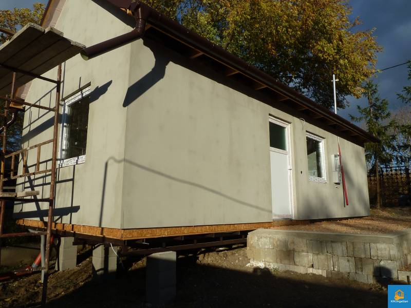 km1424Új építésű könnyűszerkezetes nyaraló eladó a Keleti-főcsatorna festői partján, csendes, nyugodt környezetben! A ház szerkezetkész állapotban 15.000.000.- Ft., de igény szerint kulcsrakészre is elkészíthető. Választható csempe, laminált parketta, belső falszín, 17.000.000.- Ft-ért. Az ingatlan lakható négyzetmétere 35nm. 5cm hungarocell, 10 cm kőzetgyapot szigeteléssel ellátott. Külső falfelület nemesvakolattal ellátott lesz. Igény szerint konyhabútor és hűtő-fűtő klíma is beszerelhető, külön megegyezett árban. Eszenyiné Nagy AnikóKM IngatlanirodaBalmazújvárosE-mail: eszenyinagyaniko@gmail.comTelefon: 06-70-932-2865
