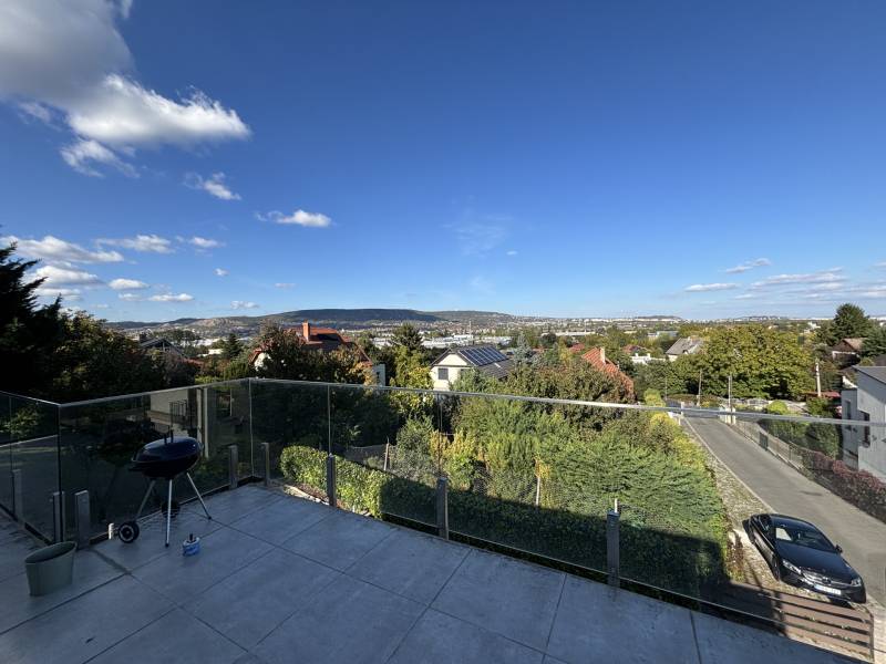 Kinek ajánlomEzt az ingatlant azoknak ajánlom, akik az otthont nem pusztán élettérnek, hanem harmóniát adó helynek tekintik.Akik szeretik, ha reggel a napfény tölti meg a szobákat, ha este a városi fényekkel a horizonton pihennek meg, és fontos számukra a nyugalom, a panoráma és a minőség.Ideális választás családoknak, pároknak, vagy akár elfoglalt szakembereknek, akik egy rendezett, zöldövezeti környezetben szeretnének élni — kompromisszumok nélkül.ElhelyezkedésAz ingatlan Budaörs egyik legkedveltebb, dombos részén található, zöldövezeti, mégis kiválóan megközelíthető környezetben.A városközpont, valamint a legfontosabb bevásárlási lehetőségek – IKEA, Auchan, Tesco, Decathlon, Rossmann, gyógyszertárak – mind néhány perces autóútra elérhetők.Több iskola, óvoda és sportlétesítmény is a közelben található, a tömegközlekedés pedig kényelmesen használható: helyi buszjáratok biztosítanak kapcsolatot a budaörsi központ és Budapest irányába.Az M1–M7 autópályák csomópontja mindössze pár percre található.A környék hangulataA budaörsi dombvidék egyik legcsendesebb és legápoltabb része.A környék atmoszférája nyugalmat és természetközelséget sugároz, miközben modern, igényes családi házak és új építésű társasházak veszik körül.A környék ideális választás azoknak, akik szeretik a reggeli sétákat, a friss levegőt, a csendes esték békéjét, és akik számára fontos, hogy a panoráma valóban elvehetetlen maradjon.Az ingatlanrólA lakás egy kétlakásos társasház felső szintjén helyezkedik el – így teljes intimitást és privát életteret biztosít.A ház elhelyezkedéséből adódóan 180 fokos, körpanorámás kilátás tárul elénk, amely a nappaliból, a teraszról és a kertből is élvezhető.A lakás különlegessége a 33 m²-es, üvegkorlattal ellátott panorámaterasz, ahol minden napszakban más arcát mutatja a kilátás.A tágas, egybenyitott nappali–étkező–konyha térben hatalmas üvegfelületek engedik be a fényt, így a lakás egész nap napfényben úszik.A három hálószoba közül a legnagyobb közvetlen kertkapcsolattal rendelkezik.A házhoz privát úton lehet feljutni, ami biztonságot és nyugalmat ad, a környezet pedig rendezett és igényes.Műszaki felszereltségÉpítés éve: 2018Fa nyílászárók, prémium hőszigetelésselHőszivattyús hűtés–fűtés rendszer, alacsony fenntartási költségekkelBeépített konyhabútor és beépített gardróbszekrényekFrissen tisztított, üres állapot, azonnal költözhetőModern, igényes kivitelezés, időtálló anyaghasználatParkolás és megközelítésA lakáshoz tartozik egy 30 m²-es, zárható, privát garázs, amely kizárólag az ingatlan tulajdonosának használatában van.Ezen felül a telken belül további 2–3 felszíni beállóhely is rendelkezésre áll.A ház privát úton közelíthető meg, ami exkluzivitást és biztonságot nyújt a lakók számára.Ez az otthon egyszerre sugároz letisztultságot, harmóniát és eleganciát – egy hely, ahol minden részlet a kényelmet és a nyugalmat szolgálja.Ha felkeltette az érdeklődését, keressen bizalommal, örömmel mutatom be személyesen is ezt a különleges ingatlant.