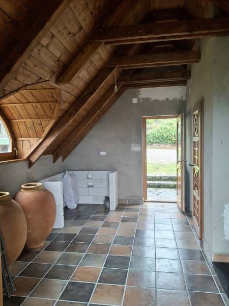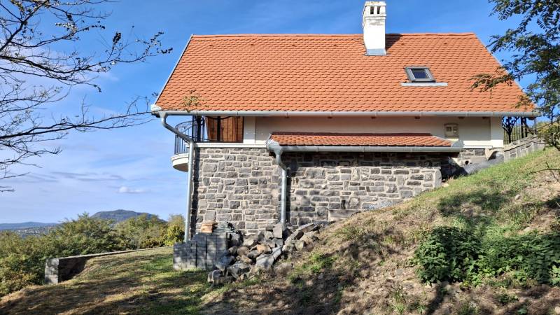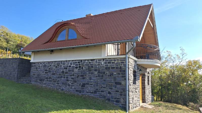Badacsonytördemicen a Római útról megközelíthető nyaralót ajánlok figyelmébe!A hegy közepén fekvő ingatlanból gyönyörű panoráma tárul elénk a Balatonra, a hegy bazaltorgonáira és Szigligetre.Kiépített út vezet a házhoz, ahol több autó számára kialakított parkoló biztosított.KIEMELT MEGBÍZÁS, CSAK AZ OTTHON CENTRUM KÍNÁLATÁBAN!A lépcsőzetes kialakítású telek nem túl nagy mérete ( 860 m2 ) optimális, gondozása sok időt nem igényel, szőlővel betelepített.A telek minden pontjáról megcsillan a Balaton víztükre, de a ház háta mögött a hegy is pazar látképet ad.A környező pár szomszéd után pihentető sétára indulhatunk az erdőbe vagy a hegytetőre.A ház falazata tégla, bazaltkő támfalakkal kiegészülve.A tető hódfarkú héjazatot kapott, szigetelt.A pinceszinten az előtér, kamra és bortároló kialakítás külön lakrésszé változtatható.Az emeleten a nagy légterű nappali- konyha és fürdőszoba befejezésre vár.A nyílászárók fenyőből készültek, dió lazúrral.A villany bekötésre került, a szennyvízhez az emésztő biztosított.Víz jelenleg nincsen, ciszternával vagy kútfúrással megoldható.Gazdasági épület, kifüggesztés köteles.A Badacsony a Tapolcai- medence legmagasabb, ikonikus hegye.A szőlőtermesztésről, borozóiról híres, kedvelt üdülőhely.A közelben több strand és étterem várja a vendégeket.Ha kérdése merült fel vagy szeretne időpontot egyeztetni, várom megtisztelő hívását!