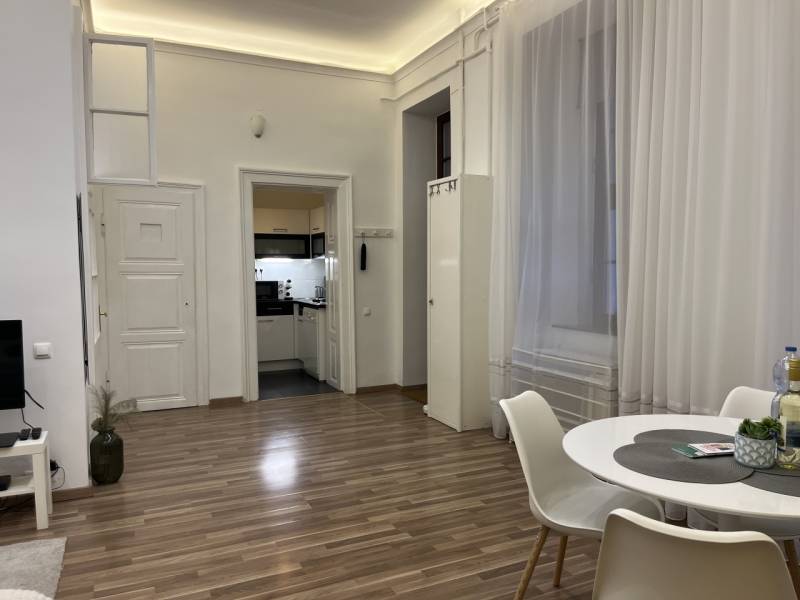 Eladó lakás Budapest szívében!Otthon-Start hitellel megvásárolható!Megvételre kínálunk Budapest V. kerületében, egy 2. emeleti 45 nm alapterületű felújított lakást, teljes berendezéssel együtt.A házban lift működik.Az ingatlan elhelyezkedése kíváló, a Szabadság tér szomszédságában a Bazilikától pár perc sétára található.A lakás beosztása:- Konyha,- Nappali + ebédlő,- Hálószoba,- Fürdőszoba + WC,A lakásban végzett felújítások:- 8 évvel ezelőtt:- villany, víz vezetékek teljes cseréje,- új hőszigetelt, fa nyílászárók beépítése,- burkolatok cseréje,- fürdőszoba felújítás,- konyhabútor.- 2 évvel ezelőtt végzett felújítások:- festés, tapétázás, új lámpák,- teljesen új bútorzat.A lakás saját mérőórákkal rendelkezik.Közös költség: 20.000.-Ft/hó.A közlekedés kíváló, buszmegálló a ház előtt, M2,M3 metró-megálló 5 perc sétatávolságon belül van.Amivel segítjük az Ön ingatlanvásárlását:- ingyenes hitelügyintézés,- jogi háttér,- földhivatali ügyintézés,- energetikai tanúsítvány,- a vevő számára az ingatlanközvetítés ingyenes.Irodánk 30 éves szakmai tapasztalattal áll ügyfelei rendelkezésére!Várom szíves megkeresését!