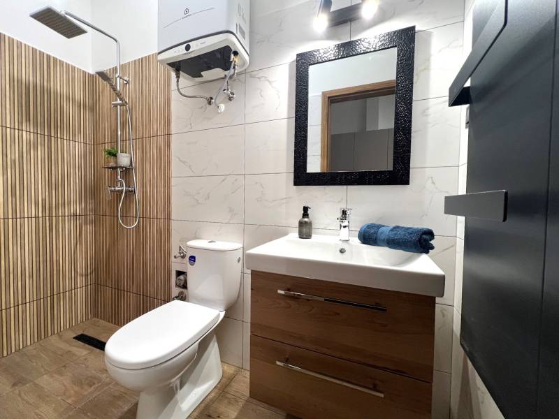 OTTHON START HITEL NEM VEHETŐ IGÉNYBE A VÁSÁRLÁSNÁLMegvételre kínálunk egy 46 m2-es, teljesen felújított amerikai konyhás nappali+1 hálószobás lakást. Az amerikai konyhás nappaliból nyílik a zuhanyzós fürdőszoba és a tágas 23nm-es hálószoba.A felújításról:A felújítás során a lakás mind gépészetileg, mind pedig esztétikailag fel lett újítva.A teljes villanyhálózat felújítása is megtörtént. A fűtésről minden helyiségben 3.5 kW-os Gree fűtésre optimalizált hűtő-fűtő klíma gondoskodik. A külső és a belső nyílászárók szintén cserélve lettek. Az ablakok háromrétegű hő-, és hangszigeteltek. A bejárati ajtó többponton záródó, masszív biztonsági ajtó. A beltéri nyílászárók tartós, karcálló CPL üvegbetétes ajtók. A hidegburkolatok szintén cserélve lettek. I. osztályú kerámia padló és falburkolat került beépítésre. Egyedi gyártású, beépített design konyhabútor gépesítve BOSCH kerámia főzőlappal, beépített elektromos BOSCH sütővel, SAMSUNG páraelszívóval, amelyek szintén a vételár részét képezik. A melegburkolat magas kopásállóságú, vízálló laminált parketta. A lakás minden ablaka elektromos alumínium redőnnyel van felszerelve.A lakás rugalmasan megtekinthető, a hét minden napján, előre egyeztetett időpontban. További felmerülő kérdéseivel forduljon hozzánk bizalommal.Ferge Imre