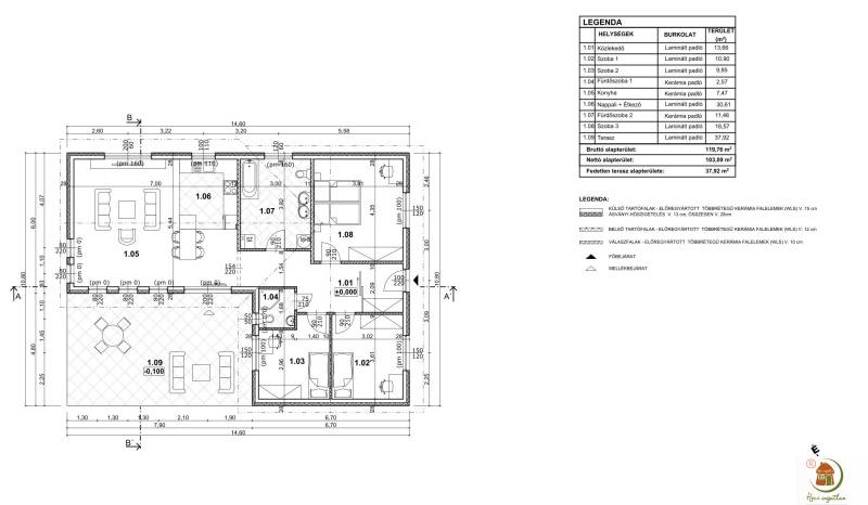 CSODÁS HÁZ CSODÁS KÖRNYEZETBENA+++ ENERGETIKA, SZINTE PASSZÍVHÁZPRÉMIUM ANYAGOK, MINŐSÉGI KIVITELEZÉSA Somlyóvölgyi lakópark egyik legszebb panorámájú és egyik legkedvezőbb elhelyezkedésű bekerített telkén új, prémium építőanyagokból épült, 3 szobás, 2 fürdőszobás, nagyteraszos, napelemes ház eladó medence kialakítással. A telek mérete 23 x 40 m. A ház bruttó alapterülete 120 nm, a nettó 103 nm, plusz 38 nm terasz. A tágas ház beosztása: - előszoba-közlekedő: 13,7m²- szoba: 16,6m²- szoba: 10,9m²- szoba: 9,9m²- nappali-étkező-konyha: 38m² - ebből a konyhai rész: 7,5m²- zuhanyzós, WC-s fürdőszoba: 2,6m²- nagy fürdőszoba: 11,5m²- terasz: 38m²A lakótér a terasz beépítésével akár 140m²-re növelhető.Az ingatlan vezetékes víz, villany és csatorna közművekkel rendelkezik. Alapozás: lemezalap terasz és ház együtt, benne 20 cm EPS lépésálló szigeteléssel - a terasz alatt is van szigetelés. A ház lemezalap 20 cm EPS 100 lépésálló szigeteléssel lett összesen 30 cm vastagságban kialakítva.Falszerkezet: kerámia anyagból, a külső falakon 3 cm kőzetgyapot szigeteléssel. Korszerű liopor technológia: hőálló, vízálló, fagyálló, penészálló, tartós, kiváló hangszigetelő és környezetkímélő falak. A külső falak 15 cm, a belső falak 10 cm vastagok. A falakra 20 cm grafitos szigetelés került, így összesen 23 cm a külső szigetelés. Tető: szeglemezes faszerkezet. Az épület a leghatékonyabb energetikai besorolású: A+++, közel passzívház jellegű energiahatékonysággal rendelkezik.Kömmerling 5-kamrás, 3-rétegű ablakok. Biztonsági bejárati ajtó és terasz tolóajtó. A tetőn 10,2kW napelemrendszer, amely 12kW-ig bővíthető. Wifi vezérlésű digitális elektromos padlófűtés. 100l-es Aquastic AQ Flat Wifi 100 digitális vezérlésű elektromos vízmelegítő, luxus zuhanypanel. Az ár tartalmazza az ablakok alumínium redőnyös felszereltségét, a nagyszobában és a nappaliban elhelyezett Gree hűtő-fűtő klímaberendezéseket, a korszerű lámpatesteket a lakótérben és a teraszon, a szaunaház elhelyezéséhez a kiépített vezetékezést. Szintén tartalmazza az ár a kerti medence előkészítését és a medence minden berendezését, tartozékát. A kertben két gépkocsi számára van beállóhely. Az Óbudától 24 km-re lévő Pilisjászfalu az agglomeráció egyik legszebb fekvésű települése. A pilisjászfalui vasútállomás az ingatlantól csak 6 perc gépkocsival. CSALÁDOKNAK ÉS BEFEKTETÉSNEK EGYARÁNT KIVÁLÓ LEHETŐSÉG!AZ INGATLAN MEGFELEL AZ OTTHON START ÉS OTTHON PLUSZ FELTÉTELEINEKAZ INGATLAN EREDETI ÁRA 165M. VEGYE MEG MOST OTTHON STARTTAL 148M-ÉRT!Van kulcsom, hívjon és mutatom!HEXI INGATLAN - OTTHON A PILISBENHajas Gabriella