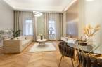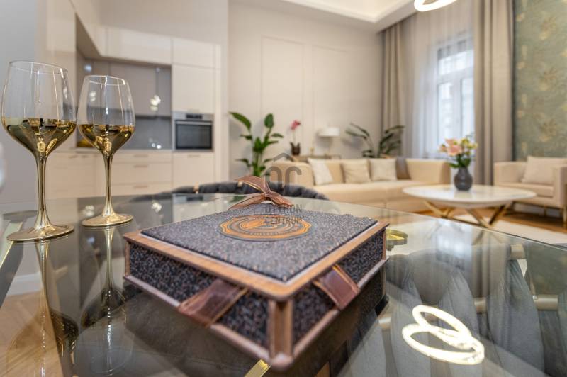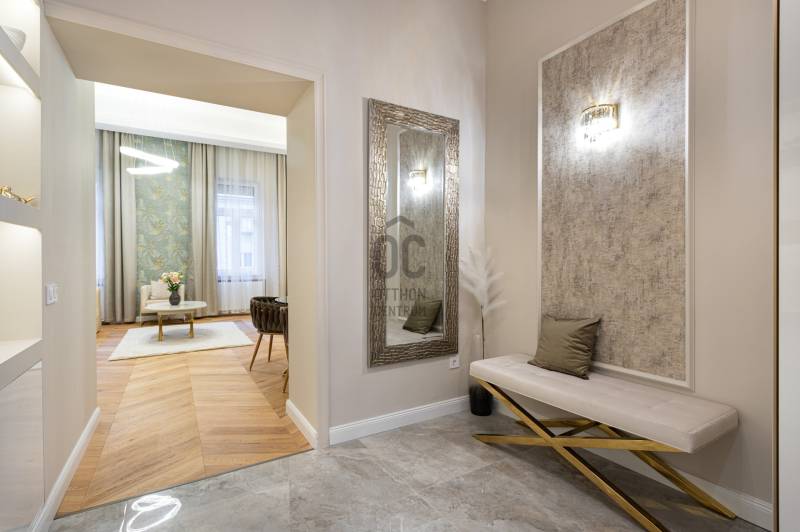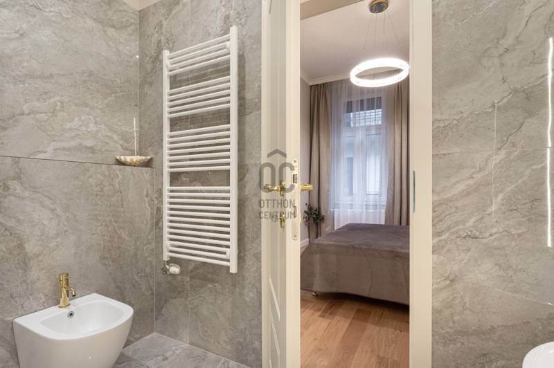 V. kerület Szemere utcában, 86 m2-es nappali + 2 hálószobás +gardrób szobás, duplakomfortos, 3. emeleti, utcai nézetű, luxuslakás eladó. Az ingatlan prémium minőségű felújításon esett át, melynek során a legkiválóbb minőségű anyagokat használták fel, a lakás minden részletében az eleganciát tükrözi.Az ingatlan amerikai konyhás nappalival rendelkezik, mindkét hálószobához külön fürdőszoba tartozik: a fő hálószobához egy elegáns káddal, WC-vel és bidével felszerelt fürdőszoba kapcsolódik, míg a második szobához egy zuhanyzós fürdő. Az ingatlan prémium minőségű bútorokkal és gépekkel együtt eladó, így az új tulajdonos azonnal beköltözhet egy teljesen felszerelt, exkluzív otthonba.A teljes körű felújítás során megtörtént a víz- és villanyvezetékek, valamint a fűtéscsövek, radiátorok cseréje. Designer csillárok, beépített szekrények, minőségi szaniterek és prémium burkolatok kerültek beszerelésre. A 4,3 méteres belmagasság igazán légies, tágas hangulatot ad a lakásnak, a chevron mintás tölgyfa parketta eleganciát és egyediséget. A konyha teljesen gépesített, AEG márkájú készülékekkel felszerelt: mosogatógép, hűtő fagyasztóval, sütő, mikró, főzőlap, páraelszívó és mosógép is rendelkezésre áll. A lakás légkondicionált.A társasház kivül, belül kiváló állapotú, az emeletre jutást 2 modern lift segíti. A lépcsőház függőfolyosós, a lakás a függőfolyosó végén található.A közvetlen közelben több busz- és villamosvonal elérhető, amelyek gyors és kényelmes kapcsolatot biztosítanak a város többi részével. Ez a lakás nem csak otthonként, hanem befektetésként is tökéletes választás azok számára, akik a belvárosi luxust és kényelmet keresik. Az ingatlan minden részlete a legmagasabb színvonalat képviseli, így garantáltan megfelel a legigényesebb vásárlók elvárásainak is.Jöjjön és helyezze magát kényelembe új otthonában!Várom megtisztelő hívását a hét minden napján!