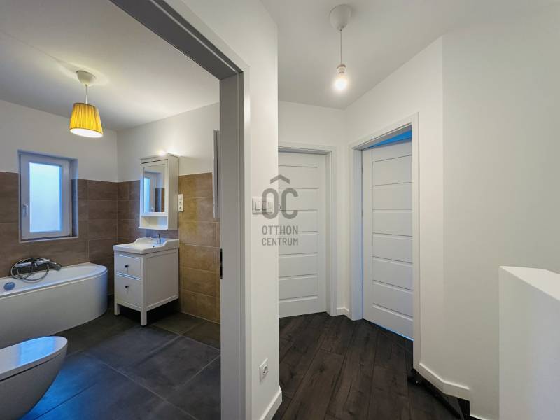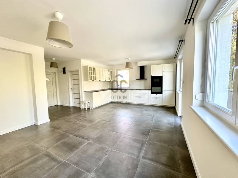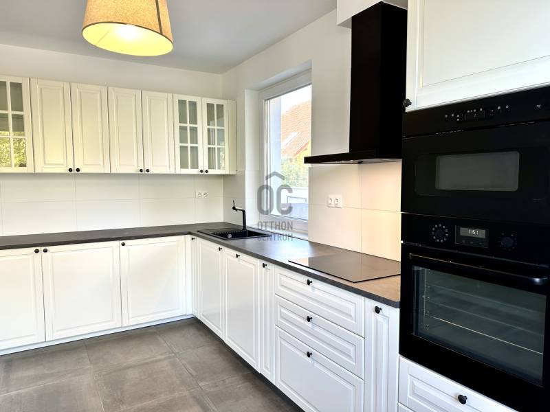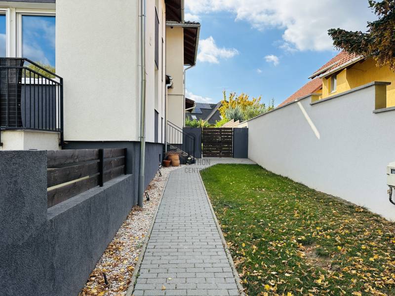 Dunakeszi egyik legkedveltebb részén, a Tóvárosban eladó egy 2020-ban épült, 116 m²-es, modern és letisztult stílusban megálmodott kétszintes lakás, amely ideális választás azok számára, akik nyugodt, mégis városi életérzést keresnek.Az ingatlan egy mindössze négy lakásos társasházban található. A hátsó szomszéddal közös, igényesen kialakított előtér biztosít kényelmes bejárást, valamint tartozik hozzá egy 6 m²-es, zárható tároló, amely bőséges helyet nyújt a szezonális holmiknak vagy sportfelszereléseknek.A földszinten tágas, világos amerikai konyhás nappali, fürdőszoba és praktikus tárolóhelyiség kapott helyet.A felső szint három külön nyíló hálószobát és egy második fürdőszobát kínál – tökéletes elrendezés családok számára, ahol fontos a kényelem és a jól átgondolt térszervezés.A nappaliból egy 6 m²-es, utcafronti teraszra léphetünk ki, amely hangulatos helyszín lehet a reggeli kávéhoz vagy esti pihenéshez. A 66 m²-es előkert igényesen kialakított, rendezett zöldfelület, amely gondozott környezetet és kellemes megjelenést biztosít az otthonnak.A lakáshoz tartozik egy 33 m²-es, kétállásos garázs, amely a vételár részét képezi, és további parkolási lehetőség is biztosított az épület előtt.Főbb jellemzők:-Porotherm tégla falazat + 10 cm hőszigetelés-Padlófűtés, gázkazán és Fujitsu hűtő-fűtő klíma -IKEA Bodbyn konyha teljes AEG gépparkkal (mosogatógép, hűtő, mikró, sütő, indukciós főzőlap)-Redőnyök, szúnyoghálók, riasztó-előkészítés-Egyedi mérőórák (3×20A) – napelem telepíthető bővítés nélkül-Minőségi burkolatok, hangszigetelt belső ajtók-Alacsony rezsi, friss festés, azonnal költözhető állapotKörnyék:A Tóváros rendezett, zöldövezeti környezet, ahol minden megtalálható pár percen belül: tó, játszótér, SPAR, buszmegálló, óvoda és iskola. A vasútállomás 15 perc sétára, ahonnan 20 perc alatt elérhető a Nyugati pályaudvar.Ez az ingatlan tökéletes választás azoknak, akik minőségi anyagokból épült, modern, alacsony fenntartású otthont keresnek Dunakeszi egyik legnépszerűbb és legnyugodtabb részén.Itt valóban csak beköltözni kell.Ha felkeltette érdeklődését keressen bizalommal a hét bármely napján!