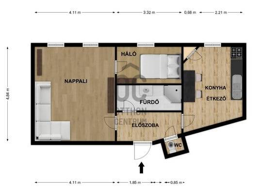 Eladó 2 szobás, felújított lakás Középső-Ferencvárosban!A 9. kerület frekventált részén, Középső-Ferencvárosban kínálunk eladásra egy első emeleti, 2 szobás, 2025-ben teljeskörűen felújított lakást. A modern beépített konyhaszekrény a vételár részét képezi. A lakás világos, jó elosztású, tehermentes, azonnal költözhető.A környék kiváló közlekedési kapcsolatokkal rendelkezik, a metró, villamos és buszjáratok pár perc sétára elérhetők. Ideális választás saját célra vagy befektetésnek is.Valóságban 46 nm, tulajdoni lap szerint 44 nm.Belső magasság: 316 cm.Jó elosztású, utcai nézet.Közös költség: 16.900 Ft / hó.Kiváló tömegközlekedés: villamosok pár perc sétára (23‑as villamos , 24, 2B, 51, 51A, ) buszok ( 281, ill. 23, 54, 55 )Számtalan kisebb, nagyobb élelmiszer üzlet, szolgáltató, gyógyertásr, orvosi rendelő a környéken megtalálható, illetve több óvoda, iskola. Bármikor mutatható ( kiv: hétfőn 15 óráig, csütörtökön 15.30-ig )Video elérhető!Ez az ingatlan a \"Hűség csomag\" megbízási portfólióhoz tartozik. Részletek az Otthon Centrum weboldalán.