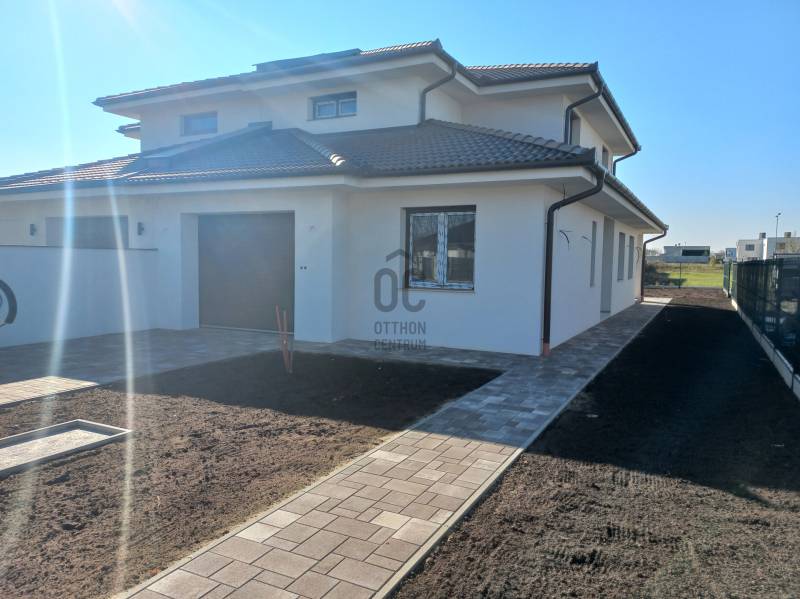 Mediterrán jellegű prémium kategóriájú ikerház, 161 m2 alapterülettel és 513 m2 telekterülettel, kiemelkedően magas műszaki tartalommal, eladó.Debrecen- Pallag legfeltörekvőbb városrészében, minden igényt kielégítő nappali+ négy hálószobás, teraszos, garázzsal rendelkező ikerház.Közművesített, közvilágítással ellátott, fásított, gondozott utcában, összetartó közösség várja az új lakókat.Tervezésnél főszempont volt a kényelmes, praktikus, de mégis elegáns élettér kialakítsa. Természetesen a lakóegységek intimitása külön figyelmet kapott ( dupla külső fal, magas, épített kerítés)A műszaki tartalomból néhány fontos adat:- teherhordó falak PTH 30 N+F falazóblokk + 15 cm külső hőszigetelés- a ház adottságai alapján, optimálisra méretezett, költség hatékony fűtési rendszer: padló fűtéssel, mennyezethűtéssel, hőszivattyús rendszerrel.- nyílászárói: korszerű műanyag szerkezetűek, kívül szinezett, fokozott hőszigetelésű és 3 rétegű üveggel, külső belső könyöklők/párkányok kompozit kő borításúak- árnyékolás: elektromos működtetésű, aluminium redőny színes, beépített tokkal- tágas világos terek, 48nm-s a konyha- étkező –nappali ahonnan közvetlen kijárat nyílik a 24nm- s kertkapcsolatos, Nyugati tájolású teraszra- 2 fürdő szoba + háztartási helyiség- minőségi, stílusos burkolatok, szaniterek és belső ajtók még kiválaszthatóak- a kivitelezés már előre haladott állapotban van- az ár tartalmazza a beépített lakás szellőztető rendszert és vízlágyító berendezést, a riasztó és kamerarendszer előkészítését, kerítéstA részletes műszaki leírással és a házzal kapcsolatos egyéb információkkal állok szíves rendelkezésére.Hívjon és egyeztessünk a részletekről!Tervezett átadás: 2026 tavasz.Bankfüggetlen hitelügyintézést banki kollégánk teljeskörűen és ingyen bonyolítja Önnek irodánkban, da akár otthonában is!Debrecen, Pallag, Barackvirág, ikerház, családi ház, kert, eladó, telek, 5 szoba, új, zöld,