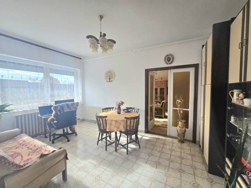Panorámás, egy szintes, 3 szobás családi ház eladó Zalaegerszeg egyik legkeresettebb részén – ÚjhegyenRitka ajánlat: 109 m² lakótér • 1485 m² telek • kifejezetten jó külső állapot • sík terület • garázs, műhelyEgy kivételes adottságú, gondosan karbantartott, hangulatos, panorámás otthon keresi új tulajdonosát – olyan vevőt, aki értékeli a nyugalmat, a nagy teret, a természet közelségét, és a minőségben megmutatkozó gondoskodást.A ház egyszintes, jól átgondolt elrendezésű, három szobával, tágas nappalival, hangulatos kertkapcsolattal, 1485 m²-es, gondosan kialakított udvarral, ahol minden részletre figyeltek – gondozásmentes kerítés, esztétikus zöldfelület, gyümölcsfák,kiskert, pince, garázs, műhely, melléképületek.A telek sík, könnyen kezelhető, nem domboldali, aszfaltos utca, buszmegálló 1 perces sétára, kiváló infrastruktúrával – tehát nem kell kompromisszumot kötni a nyugalom és az elérhetőség között. A ház főbb értékei röviden:✅ 109 m²-es, folyamatosan karbantartott családi ház✅ 1485 m²-es, teljesen körbekerített, gondozott telek✅ 3 különálló, jól bútorozható szoba + nappali + kiegészítő terek✅ Kicserélt műanyag nyílászárók, redőny, szúnyogháló✅ B 30-as tégla falazat✅ Felújított tető teljes szerkezettel és lemezhéjazattal ✅ Gázcirkó + vegyes tüzelésű kazán – két fűtési rendszer✅ Kamra, garázs, műhely, kamerarendszer, 3 fázis✅ Bekerített udvar, virágos kert, termő gyümölcsfák ✅ A tetőtér beépíthető, a pincétől a padlásig beton lépcső vezet fel egy külön lépcscőházban✅ Száraz, hasznos pince + melléképületek✅ Tehermentes, rendezett tulajdoni lap → rövid időn belül birtokba vehető A környezet, ami valódi értékEgyik legélhetőbb része Zalaegerszegnek: csendes, biztonságos, rendezettTiszta időben Alpok-panoráma, természetközeli atmoszféraAszfaltos út, nem meredek, nem hegyoldali – könnyű megközelítés egész évbenBuszmegálló pár méterre – akár autó nélkül is élhetőKultúrált, kedves szomszédok – jó közösség, nyugodt lakókörnyezet Irányár: 79.500.000 Ft(A szomszéd telek és ház igény esetén külön megvásárolható – egyedi lehetőség, akár összenyitható birtokkal.)