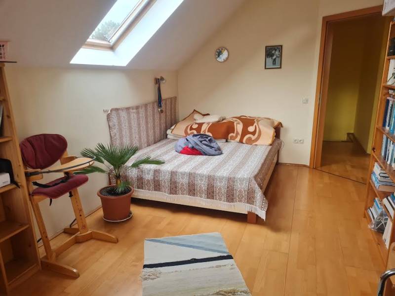 CSILLAGHEGY DUNA FELŐLI OLDALÁN 2004-BEN ÉPÜLT 5 SZOBÁS HÁZ ELADÓ!Csillaghegy Duna felőli oldalán 599 m2-es telken csendes mellékutcában eladó ez a jelenleg kétlakásos önálló családi ház.A ház nagyobbik része 2004-ben újonnan épült, DK-i tájolású, szép állapotú, belső kétszintes, terasz és kertkapcsolatos nappali, konyha, étkező, kamra, 3 hálószoba, két fürdőszoba van ebben a részben.A kisebbik része a 30-as években épült, DNY-i tájolású, földszintes, 1 nagy szoba, konyha, étkező, fürdőszobával. Ez a rész felújítandó, tetőtere igény szerint beépíthető.Mindkét részben minden közmű önállóan mérhető, külön bejáratú, de egy fal lebontásával a két rész összenyitható.2004-es műanyag Hofstadter nyílászárók vannak az épületben, 12 m2-es száraz pince, kondenzációs kazán, padló és radiátoros fűtés, szép beltéri ajtók, beépített konyhabútor gépekkel, nagy beépített szekrény, 25 m2-es terasz.Kiváló idős szülővel, vagy nagy gyerekkel költözőknek is! A teljes földszint a teraszok nélkül 113 m2, az emelet pedig 41 m2.A kert teljesen sík, nagy, a szomszédok rendezettek, kedvesek. A közlekedés kiváló, a busz 5 perc gyalog.Rugalmasan, bármikor megnézhető!