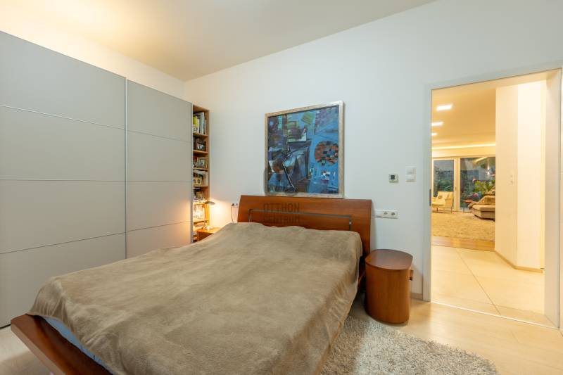 Eladásra kínálok Adyligeten, a II. kerületben egy 200 m²-es, 4 hálószobás, modern családi házat 729 m²-es telken.A ház 3 méteres belmagasságával, tágas tereivel és minőségi anyaghasználatával kiváló otthont nyújt többgyermekes családok számára is.A nappali–konyha–étkező 50 m²-es, négy különnyíló hálószoba (16 m², 12 m², 18,7 m², 17 m²) és több terasz (25,4 m², 14 m², 16,2 m², 9 m²) tartozik hozzá, amelyek közvetlen kapcsolatot biztosítanak a kerttel.A fűtésről és hűtésről Daikin hőszivattyús rendszer gondoskodik, mennyezeti fűtőszálakkal és padlófűtéssel kombinálva, geo áramról, kedvezményes tarifával.A havi átlagos energiafogyasztás rendkívül kedvező (kb. 29 000 Ft/hó), a vízfogyasztás kéthavonta kb. 10 000 Ft.A ház 15 cm-es szigetelést és ürömi mészkőburkolatot kapott.A háromrétegű nyílászárók kívül antracit színű fém, belül fehér műanyag kivitelűek, motoros zsalúziákkal ellátva.Riasztórendszer és távfelügyeleti bekötés is kiépítésre került.A belső terek természetes tölgyfa svédparkettával, a vizes helyiségek nagy méretű hidegburkolatokkal készültek.A konyhában magasfényű világos bútorok és beépített Bosch gépek találhatók.A gondozott, nagy ősfás kertben kerti tároló kis ház is helyet kapott.Adyliget kiválóan megközelíthető tömegközlekedéssel és autóval is: a 10-es út és a környék főbb közlekedési útvonalai gyors összeköttetést biztosítanak Budapest belső kerületeivel és az M0-ás körgyűrűvel.A környéken bevásárlási lehetőségek, orvosi rendelő, gyógyszertár, iskolák és óvodák könnyen elérhetők.A környezet csendes és rendezett, a levegő tiszta, a zajterhelés minimális.Ez a környék ideális választás azoknak, akik városi kényelemre és természetközeli életre egyaránt vágynak.További részletekért hívjon mielőbb!Egyedi igényekre szabott lakáshitelekkel állunk rendelkezésére. Bankfüggetlen Hitel Centrumunk az országban elérhető összes bank és hitelintézet ajánlatát versenyezteti az Ön számára díjmentesen.Munkatársaink nagy szakmai tapasztalattal várják Önt az előre egyeztetett időpontban akár a normál munkaidő után is.