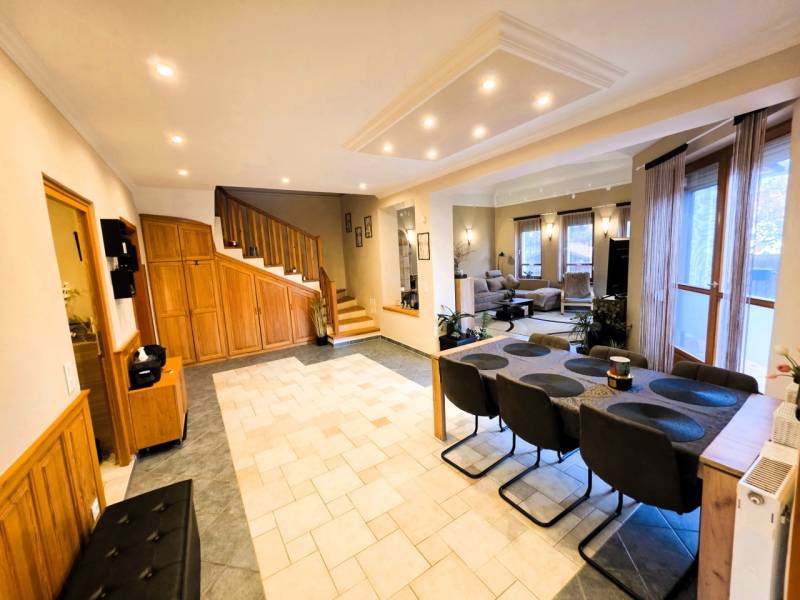 Veszprém – Bakonyalja lakótelep – Kertvárosi környezetben, gondozott telken eladó egy kiváló adottságokkal rendelkező, 2005-ben épült, téglaépítésű láncházi családi otthon!A 439 m²-es, szépen karbantartott és parkosított kert igazi nyugalomsziget. A telek hátsó részén automata locsolórendszer működik, a ház előtti részen pedig térkövezett gépkocsibeálló biztosít kényelmes parkolást akár több autó számára is, a házhoz tartozik továbbá egy tágas, kb. 30 m²-es garázs.A ház belső tere jó elrendezésű és világos:3 külön nyíló hálószobaNagy, galériás nappali – melynek éke a hangulatos cserépkályhaAmerikai konyha (tágas és praktikus étkezőrésszel)2 fürdő + 2 WC (külön az alsó és felső szinten)Klíma gondoskodik a kellemes hőmérsékletről a nyári időszakbanAz ingatlan ideális választás:családok számára,akik csendes, mégis jól megközelíthető helyet keresnek,akik értékelik a kényelmet, a gondozott környezetet és a tágas életteret.A környék biztonságos, nyugodt, ugyanakkor minden szükséges szolgáltatás (iskola, óvoda, bolt, buszmegálló stb.) könnyen elérhető.Amennyiben a veszprémi GDN Ingatlaniroda által kínált felújított lakás, vagy bármely, a kínálatunkban található ingatlan felkeltette érdeklődését, forduljon hozzám bizalommal!Ingatlanirodánk díjmentes, banksemleges hitelügyintézéssel, illetve ügyvédi tanácsadással is áll Ügyfeleink rendelkezésére!