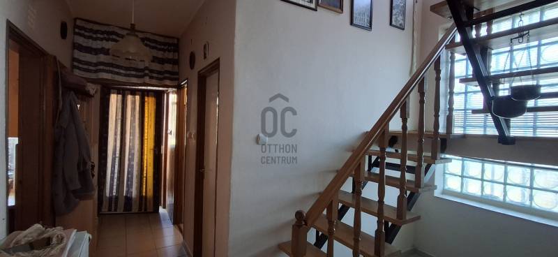 Eladó Pécs Uránvárosban 64,9 millió forintért 100m2-es, 4 szobás ikerház 230m2 telekkel. A földszinten található a konyha, a nappali, fürdőszoba és különálló WC. A beépített tetőtérre lépcső visz fel az előtérbe ahol balról egy nagy világos szoba van terasszal amelyből egy hálószoba nyílik. Az előtérből jobb oldalon található szobából nyílik egy gardrób / tároló helység. Az udvarban kocsibeálló, szép kert és egy kerti kiülő pavilon van.A lakóingatlan összkomfortos, a fűtést gáz-cirkó kazán biztosítja. Az udvarban lévő tárolóban helyezhető el mindaz ami a kert és udvar gondozásához szükséges. A kertben lévő fedett kerti pavilon kiváló kiülési lehetőséget biztosít a család és barátok részére. Az udvarba történő beállás biztosított de a ház előtt az utcán is van parkolási lehetőség. Igény esetén a kocsibeálló végén álló tároló garázzsá alakítható át.A környék nyugodt és csendes. A közelben található buszmegállók és a vasútállomás gyors és kényelmes eljutást biztosítanak Pécs más részeibe, valamint a környező településekre is.DEUTSCH:In Pécs Uránváros, 4-Zimmer-Doppelhaushälfte für 64,9 Millionen zu verkaufenZu verkaufen in Pécs Uránváros für 64,9 Millionen Forint: 100 m² großes Doppelhaus mit 4 Zimmern und 230 m² Grundstück. Das Gebäude hat ein Erdgeschoss und ein Obergeschoss. Im Obergeschoss befindet sich eine Terrasse, im Erdgeschoss eine Garage und ein separater schöner Garten. Im Hof befindet sich ein Gartenpavillon.Im Erdgeschoss ist die Küche, das helle Wohnzimmer, das Badezimmer und ein separates WC. Eine Treppe führt zum ausgebauten Dachgeschoss, wo sich links ein großes, helles Zimmer mit Terrasse befindet, von dem aus man in ein Schlafzimmer gelangt. Vom Vorraum aus ist man rechts in einen dritte Zimmer von welche in einen Raum gelandet, welche der als Kleiderschrank (Garsrobe) oder als Abstellraum dienen kann. Die Wohnimmobilie ist mit allem Komfort ausgestattet. Die Heizung wird durch einen Gas-Zirkulationskessel gewährleistet.