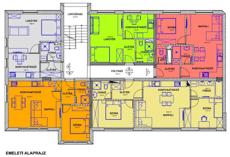 Tisztelt Érdeklődő!Makón, a Liget Lakóparkban jelenleg is zajlanak azok az átalakítási és felújítási munkálatok, amelyek egy teljesen megújult, modern emeleti lakást fognak eredményezni! Ez azt jelenti, hogy Ön lesz az elsők között, aki birtokba veheti ezt a világos, praktikus elrendezésű otthont – vadonatúj állapotban.Az ingatlan a Liget utcában, egy zárt lépcsőházas, mindössze 16 lakásos társasházban található. A belváros autóval alig 3 perc, kerékpárral 5 perc, gyalog pedig körülbelül 17 perc alatt megközelíthető, így minden fontos hely könnyen elérhető. Bevásárlási lehetőségek, óvoda, iskola és buszmegálló néhány száz méterre található, ami a mindennapokat igazán kényelmessé teszi.Az épület emeletén eladó egy 43 m²-es, téglaépítésű tetőtéri lakás, amely teljeskörű megújuláson megy keresztül – az új vezetékektől a burkolatokig minden részlet megújul. A lakás bútorozatlanul, beépített gépek nélkül kerül átadásra, ugyanakkor a szükséges kiállások és csatlakozási pontok már előre kialakításra kerülnek, így az új tulajdonos könnyedén berendezheti otthonát saját ízlése szerint.A teljes áram-, víz- és csatornahálózat új, a gáz nincs bekötve a lakásba, azonban a fűtés házközponti, gázzal üzemelő rendszerrel történik. A hőfokszabályzós radiátorokon keresztül működő rendszer lakásonként egyedi hőmennyiség-mérőkkel rendelkezik, így minden lakó saját fogyasztása után fizet.A melegvíz-ellátást korszerű, energiahatékony okos bojler biztosítja, a lakásban klímaberendezés kiépítése is megtörténik, a háromrétegű, hőszigetelt műanyag nyílászárók pedig a hatékony működést és alacsony energiafogyasztást garantálják. A nappali és konyha egybenyíló tere ideális központja lesz a mindennapoknak, a hálószoba pedig nyugodt, pihenésre alkalmas helyiségként szolgál.A fürdőszoba modern, letisztult burkolatokkal készül, melyek mintái megtekinthetők az irodánkban.Parkolás az utcán díjmentesen lehetséges, de saját parkolóhely is vásárolható a telekhatáron belül.A lakás legkésőbb 2026. május 31-én kerül átadásra, így még időben megálmodhatja, hogyan alakítaná saját ízlésére új otthonát.Az alaprajzokon feltüntetett négyzetméterek tájékoztató jellegűek, a végső adatok kisebb mértékben változhatnak.Foglaljon időpontot még ma, és tegye meg az első lépést új otthona felé a Liget Lakóparkban!Részletes műszaki tájékoztatás és fizetési ütemezés az irodánkban elérhető.Makóról bővebben itt: http://mako.hu/makoi-seta/Legyen tisztában pénzügyeivel, mielőtt elkötelezi magát! Ebben díjmentesen az Ön rendelkezésére áll bankfüggetlen hitelközvetítőnk.Vevőinket profi és kedvező díjazású ügyvédi háttérrel is segítjük a szerződéskötés során.#otthoncentrummako #makoiingatlan #eladolakas #makoeladolakas #ingatlan #otthoncentrum #ingatlanpiac #otthon #hagymatikum #forsale #oc #hitel #ocmako #biztositas #realestate #veledmindenlepesnel #homesweethome #ingatlankozvetites #almokatepitunk #koltozes #felujitottlakas