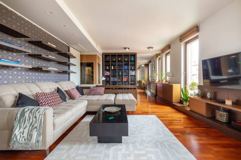 Igazi ritkaság a belváros szívében – panorámás luxuslakás a Central Passage-banEladásra kínálunk Budapest egyik legkeresettebb belvárosi épületében, a Central Passage-ban egy 7. emeleti, 90 m²-es, kivételes adottságokkal rendelkező luxuslakást.Az ingatlan különlegességét nemcsak a két lakás egybenyitásával kialakított, egyedi elrendezés adja, hanem a magas szintű kivitelezés, a minőségi anyaghasználat, és az a páratlan panoráma, amely minden ablakból elénk tárul. A lakásból nemcsak a Szent István-bazilika, hanem a Mátyás-templom is látható – mindez akár a konyhából gyönyörködve is élvezhető.A tágas, elegáns fürdőszobában szauna is helyet kapott, amely tovább fokozza az otthon kényelmét és a mindennapi luxus érzetét. A lakás kialakítása során minden részletre gondosan ügyeltek, így tökéletes választás mindazok számára, akik egy igazán különleges, városi panorámás otthont keresnek.A Central Passage modern épülete igényes lakóközösséggel és rövid távú bérbeadási engedéllyel rendelkezik, így az ingatlan befektetésként is kiemelkedően vonzó lehet.Ez a lakás egyedi – akárcsak az, aki megtalálja benne a saját otthonát.A képek valóban magukért beszélnek.Hívjon, jöjjön el, vegye meg!