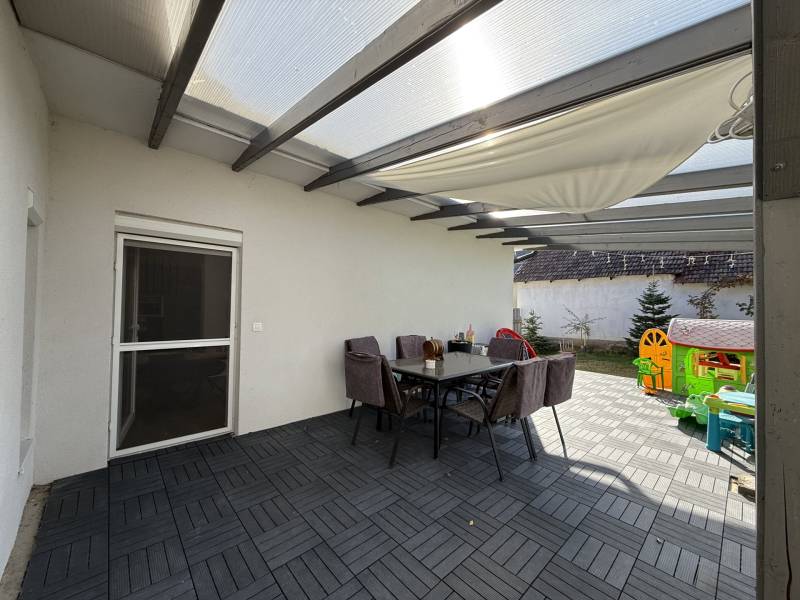 Eladó teljes körűen felújított, dupla komfortos családi ház nagy telekkel Vámospércsen!Kiváló elhelyezkedésű, igényesen felújított, belsőépítész által tervezett enteriőrrel rendelkező családi ház eladó, mindössze 5 perc sétára a városközponttól, bolttól és szintén sétatávolságra az iskolától/óvodától!A ház 17 méteres utcafronttal, új kerítéssel és elektromos kapuval rendelkezik, így biztonságos, zárt környezetet nyújt az egész családnak.Főbb jellemzők:•Teljes körű felújítás történt 4 évvel ezelőtt (víz-, villany-, szennyvíz-, gázrendszer teljes cseréje, teljes tetőszerkezet cseréje, alapokig visszabontva minden!) MINDENRŐL FOTÓDOKUMENTÁCIÓ KÉSZÜLT! •Új tetőszerkezet Bramac Merito Plus könnyített beton cseréppel•46 cm vastag vályogfalak, új nemesvakolattal ellátva•Teljes padlófűtés az egész házban + radiátoros kiegészítő fűtés•Új kombi gázkazán és 120 literes villanybojler biztosítja a melegvizet•3,5 kW-os Midea hűtő-fűtő klíma•Műanyag, 5 légkamrás, 2 rétegű nyílászárók, redőnnyel és szúnyoghálóvalElrendezés és helyiségek:•Tágas nappali – étkező – konyha egy légtérben, világos, barátságos hangulattal•szülői hálószoba saját zuhanyzós fürdővel•2 gyerekszoba, melyekhez saját fürdőszoba tartozik•Beépített szekrények a folyosón a praktikus tárolásért•30 m²-es terasz, víz- és lefolyókiállással – akár kültéri konyha is kialakíthatóKiegészítő helyiségek és extrák:•Külön bejáratú hátsó helyiség, jelenleg tárolóként funkcionál, de irodának vagy vendégszobának is tökéletesen alkalmas•10 m²-es pince, amely kiváló tárolásra vagy akár hobbyhelyiségnek is•1680 m²-es telek, ahol bőven jut hely kertnek, pihenésnek, akár medencének isKonyha és felszereltség:A konyha teljesen gépesített és beépített: mosó/szárítógép mosogatógép indukciós főzőlap sütő páraelszívó hűtőszekrényMinden szobában és a nappaliban TV és internet kiállás került kiépítésre, tökéletesen alkalmas modern családi élethez vagy home office-hoz is.További kérdés, megtekintés esetén hívjon, szívesen válaszolok!