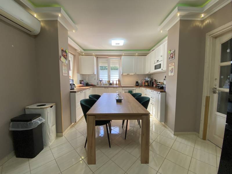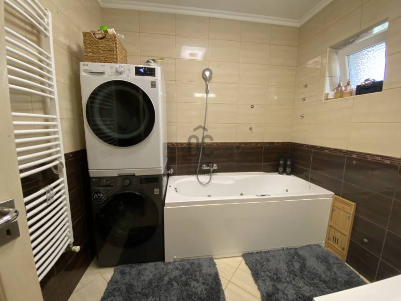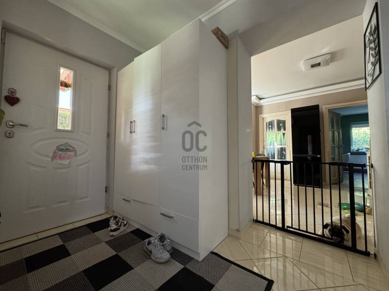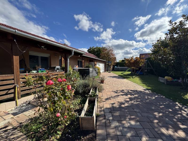 Földszintes álomOtthon GödönGöd a Dunakanyar kapuja, egy festői szépségű bűbájos kertváros a Főváros biztonságot nyújtó közelében.Csodálatos természeti adottságaival, jó nevű iskoláival, pezsgő Duna-parti életével, madárcsicsergős, jó levegőjű hétköznapjaival vált a családalapítók és kiköltözők kedvelt célpontjává.Itt, Felsőgöd szívében került eladósorba egy újjáépített, megkapó hangulatú családi ház.Rendezett, családi házas utcában, tisztes porták szomszédságában, jól ellátott területen kapott helyet.Majd\' 900m2-es kertjét automata kapuval felszerelt míves kovácsoltvas kerítés őrzi, viacoloros autóbeállójáról megközelíthető a 2 autó parkoltatására alkalmas duplagarázs, de a mediterrán térkövön további 3-4 autó parkoltatható kerten belül.A kert gyönyörűen karbantartott, rózsatövek és örökzöld dísznövényekkel ültetett lugasok emelik hangulatát. Kerti tároló gondoskodik a szerszámok elhelyezéséről, gyűrűs kút pedig a kényelmes pázsit gondozásról. Egészséges, beállt thuja sövény, épített játszótér, hatalmas medence, és jakuzzi is szolgálják a Család nyugalmát, ezek mind a vételár részét képezik!A ház 185m2-es, FÖLDSZINTES elrendezésű, Tulajdonosai minőségbeli maximalizmusának méltó tükreként egyedi hangulatvilágú Otthont teremtettek a 2016os teljes átépítés során.3 hálószoba (16m2,18m2,25m2!), 2 fürdőszoba, gardróbhelyiség, hatalmas nappali, spejz, konyha-étkező, és tágas előszoba alkotják a helyiséglistát.A fűtésrendszer megújult, kondenzációs cirkókazán került behelyezésre, a hidegburkolatok alatt padlófűtéssel, hálószobákban radiátoros hőleadókkal.Külső dryvit hőszigetelés, KLÍMA, redőnnyel és szúnyoghálóval is felszerelt műanyagtokos hang és hőszigetelő nyílászárók, rusztikus beltéri ajtók, kamera és riasztórendszer, magasfényű gépesített konyhabútor!Kiváló tájolásának köszönhetően egész nap világos, fedett teraszán az egész család kényelmesen fogyaszthatja a nyáresti vacsorát.Jöjjön el, nézze meg, ha nagy terekre vágyik, ha nem akar felújítani, ha madárcsicsergős bájos utcában tervezi Családja jövőjét egy magas felszereltségű, nagybetűs OTTHON-ban!Vigyázat! -abszolút beleszeretős!Közelben: MINDEN: vasútállomás ( Bp Nyugati PU 30p), városi buszjárat megállója ( Bp.Újpest Városkapu 40p), iskola, óvoda, orvosi rendelő, posta, strand, teniszpark, bicikliút, játszótér, lovarda, bevásárlási lehetőségek, pékség, street gym park.Budapest autópályán 25 perc alatt elérhető, autópálya lehajtó 6perc!