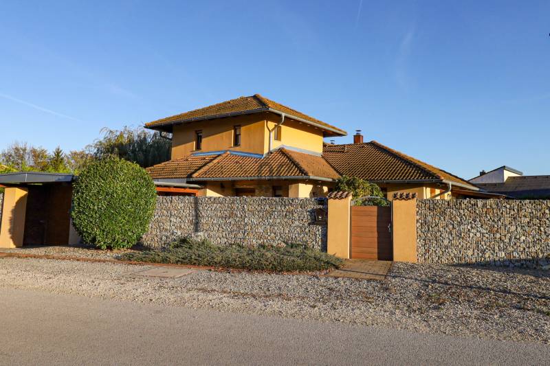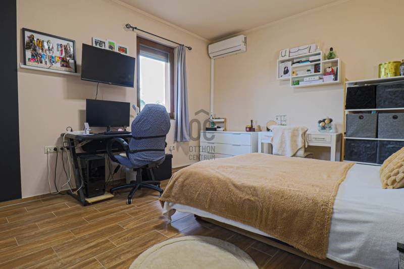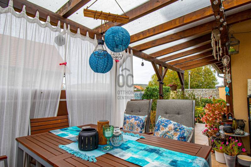 Soprontól mindössze néhány kilométerre az Alpok lankáinál kerül eladásra egy mediterrán stílusú családi ház.AZ INGATLAN JELLEMZŐIÉpítés éve: 2013Kétszintes, nettó 148 m² / bruttó 185 m² alapterület38-as Porotherm tégla építés, 10 cm-es szigeteléssel554 m2 telekHELYISÉGEK ÉS ELRENDEZÉSFöldszint:Amerikai konyhás nappali teraszkapcsolattal2 hálószoba, az egyik saját fürdőszobávalFürdőszoba + külön toalettKamra, háztartási helyiség (gépesített, vízlágyítóval és ivóvíz rendszerrel)KÜLÖN LAKRÉSZ ami a FŐ LAKRÉSZBŐL is MEGKÖZELÍTHETŐ26,8 m²-es, külön bejárattal is, saját konyhával és fürdőszobával➡️Ideális két generáció együttélésére vagy vállalkozás, rendelő, iroda kialakítására is.Emelet:1 szoba1 tárolóMŰSZAKI FELSZERELTSÉGFűtés: padlófűtés, Vaillant kazán (2024-es csere)Hangulatos öntöttvas kandalló Melegvíz: 180 literes tároló4 db hűtő-fűtő klímaRiasztó- és kamerarendszerBorovi fenyő beltéri ajtók, Rehau műanyag bejárati ajtóLépcső alatti beépített szekrény, padlás tárolási lehetőséggelKERT ÉS KÜLTÉR25 m²-es fedett terasz dombokra és naplementére néző csodás kilátássalMedence (3×1,2 m), kerti zuhany, tűzrakó / grillezőKét kerti tároló: 7,8 m² és 7,1 m²Kutyakennel: 3×2 mGarázs és fedett előgarázs (Hörmann kapukkal)Kút, amely biztosítja az öntözéstKonyhakertLOKÁCIÓA ház zöldövezeti, csendes környezetben található, mégis rövid autóútra Soprontól. A település kiváló infrastruktúrával rendelkezik – bölcsőde, óvoda, iskola, orvosi ellátás, posta, üzletek és éttermek mind helyben megtalálhatók.A közösségi élet aktív, rendszeres rendezvényekkel, sportolási lehetőségekkel és túraútvonalakkal.A közelben Natura 2000-es természetvédelmi terület és horgásztó kínál kikapcsolódást a természet szerelmeseinek.Tökéletes választás mindazoknak, akik a természet közelségét és a városi infrastruktúra előnyeit egyszerre szeretnék élvezni.Hitelre van szüksége?Az Otthon Centrum az ország egyik legnagyobb és legmegbízhatóbb hitelközvetítőjeként, teljes körű és díjmentes hitelügyintézéssel, biztosításkötéssel áll rendelkezésére!Kérje személyre szabott ajánlatunkat Kollégáinktól!