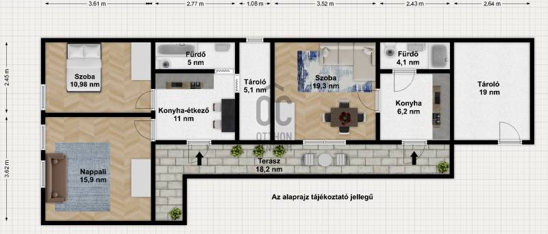 A Pilisborosjenő csendes, mégis élénk részén található ez a remek lehetőség, amely tökéletes választás lehet családoknak és befektetőknek egyaránt. Az ingatlan egy 539 négyzetméteres telken helyezkedik el, amely elegendő teret biztosít a pihenéshez és a szabadidős tevékenységekhez. A házban három tágas szoba található, amelyek mindegyike világos és barátságos légkört áraszt. Két fürdőszoba áll rendelkezésre, így a családtagok kényelmesen elférnek reggelente is. A 18,2 négyzetméteres terasz ideális helyszín a reggeli kávé elfogyasztásához vagy a nyári estéken való pihenéshez, ahonnan gyönyörű kilátás nyílik a környező tájra. Jelenleg az ingatlan 2 lakrészre van kialakítva külön bejárattal - de akár egybe is nyitható - így két generáció számára is alkalmas.Az ingatlan állapota jó, a fűtés gáz cirkó rendszerrel megoldott, így a téli hónapokban is kellemes hőmérsékletet biztosít. Az ingatlan környezete rendkívül biztonságos és csendes, ami különösen fontos lehet családosok számára. A közeli természetvédelmi területek és a Pilis-hegység közelsége számos lehetőséget kínál a szabadidős tevékenységekre, mint például túrázás, kerékpározás vagy akár piknikezés. A közlekedés szempontjából a helyszín előnyös, hiszen a közeli buszmegállókból könnyen elérheti a fővárost, így a mindennapi ingázás sem jelenthet problémát. Az autóval közlekedők számára pedig a közeli főutak gyors és egyszerű hozzáférést biztosítanak Budapest és a környező települések irányába. Pilisborosjenő nem csupán a természet közelsége miatt vonzó, hanem a település barátságos közössége és a helyi szolgáltatások gazdagsága is hozzájárul ahhoz, hogy itt élni valóban élvezetes legyen. Az iskolák, boltok és egyéb létesítmények mind könnyen elérhetőek, így a mindennapi élet kényelmesen és praktikusan szervezhető. Ez az ingatlan nem csupán egy ház, hanem egy lehetőség arra, hogy egy igazán élhető, nyugodt környezetben találja meg új otthonát vagy befektetési célú ingatlanát. Ha bármilyen kérdése van, vagy szeretné megtekinteni az ingatlant, bizalommal forduljon hozzám, szívesen segítek Önnek a lehető legjobb döntés meghozatalában.Ez az ingatlan a \"Felező csomag\" megbízási portfólióhoz tartozik. Részletek az Otthon Centrum weboldalán.