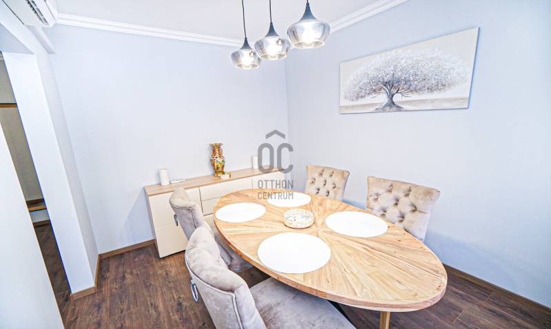 Egy frissen felújított, elegánsan kialakított, berendezett lakás eladó az Egyetemek és a Nagyerdő közelségében.Debrecen Sestakerti részén a Komlossy utcában található.Az elhelyezkedésének köszönhetően, könnyen elérhetőek az Egyetem fő épülete ( 400 m ), sportolási ( DEAC sportcentrum 300 m), kikapcsolódási lehetőségek, üzletek, és éttermek.Busz (3) és villamos megálló ( 2) 5 perc séta távolságon belül elérhető.A lakás paraméterei:Kissebb lakóközösségú társasház 1. emeleti, nettó 56 nm -s lakása, melyhez tartozik egy 4nm -s erkély.Konyha + étkező, 2 szoba, fürdőszoba, WC, előszoba elosztású2025 ben teljeskörű felújításon eset át, mely az elektromos és vízvezetékek cseréjétől, új burkolatok lerakásán keresztül, a modern bútorok és minőségi háztartási gépek beépítéséig mindent felölelt.A kialakításban és burkolataiban megújult fürdőszoba és a WC külön helyiségben,Hívjon és nézze meg, higgye el szebb mint a képeken!Debrecen, Sestakert, Komlóssy, első, új, emelet, bútor,